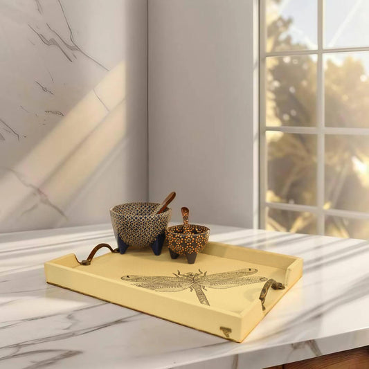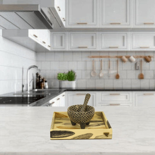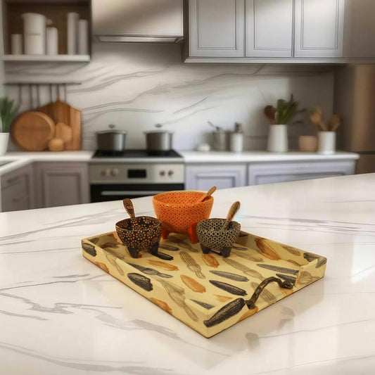 Black Snakeskin Serving Tray w/ Corncob Handles