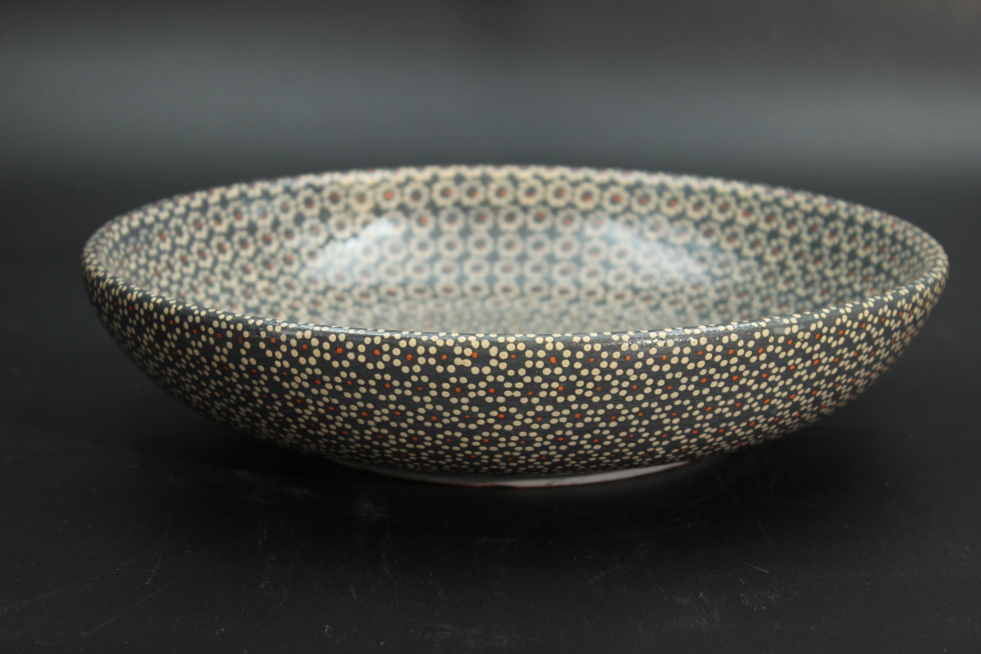 Beautiful grey-patterned, handcrafted, clay-ceramic salad bowl. Known for its good artisan quality, Mexican ceramic products are some of the best in the world. Thanks to centuries of cultural exchange coming all the way from the Arabian peninsula, and then passing through the Iberic peninsula, Mexican ceramic artists have perfected and achieved a unique method that yields exquisite designs that will elevate the perception of your home.