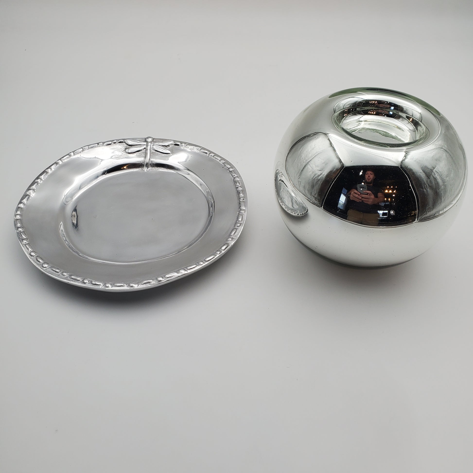 2pc Candle Holder w/ Dragonfly Serving Tray