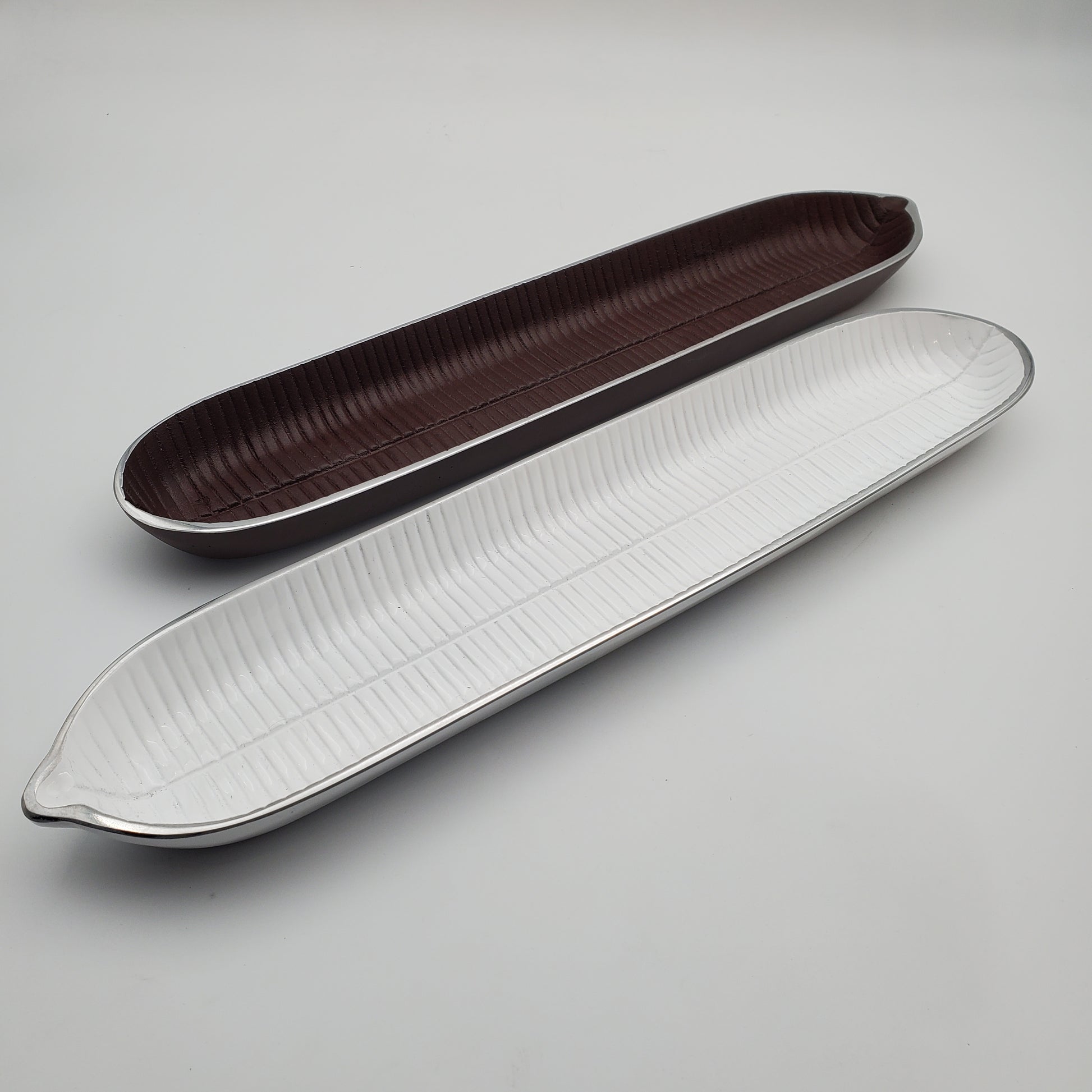 Beautiful white and brown styled tray set. Our beautiful and stylish Mexican Pewter collection will bring a modern touch to your home like no other. The products we offer in this collection are top of the line when it comes to Mexican artisan works. They are valued worldwide for their impressive designs and finishes. Don't miss out!