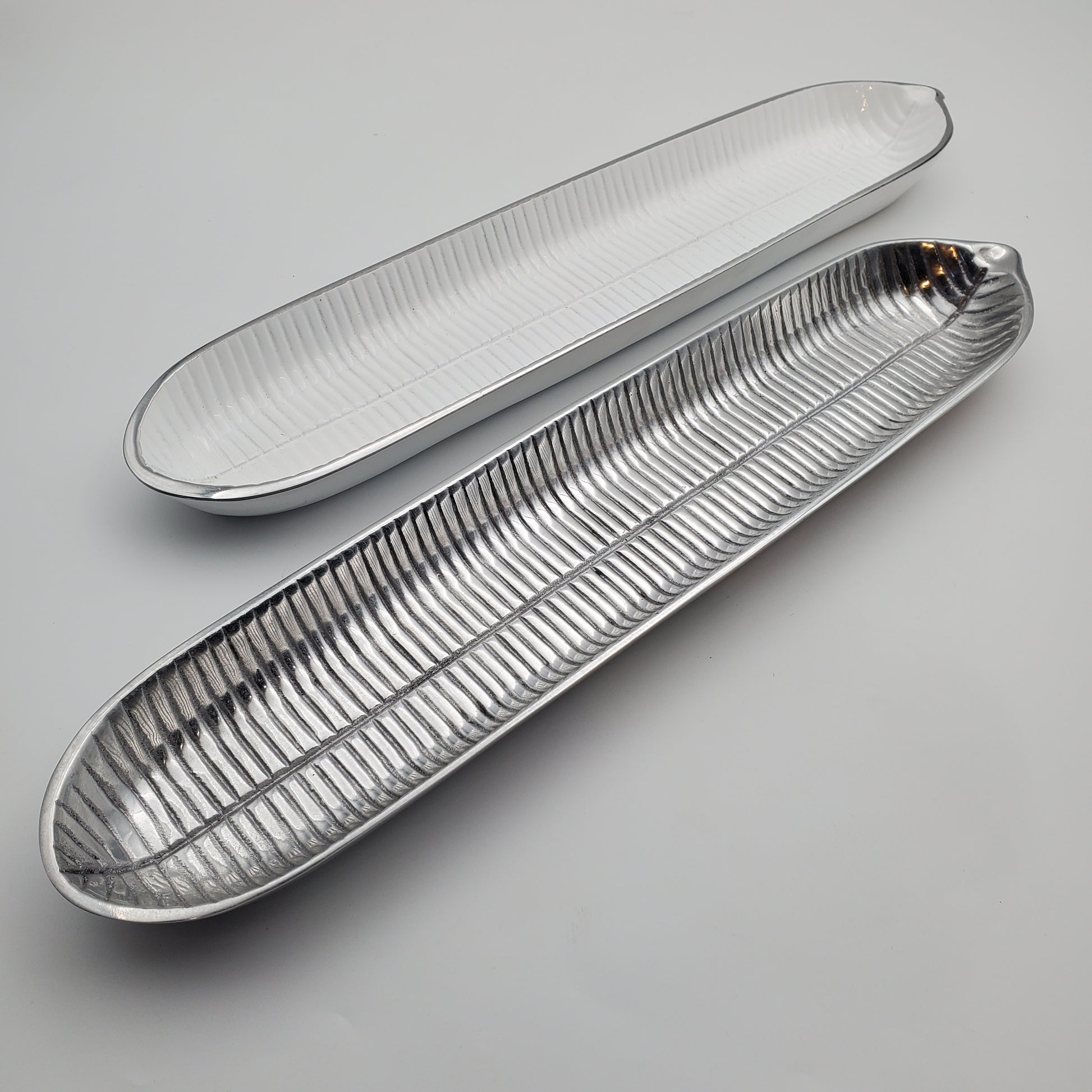 Beautiful white and slver styled tray set. Our beautiful and stylish Mexican Pewter collection will bring a modern touch to your home like no other. The products we offer in this collection are top of the line when it comes to Mexican artisan works. They are valued worldwide for their impressive designs and finishes. Don't miss out!