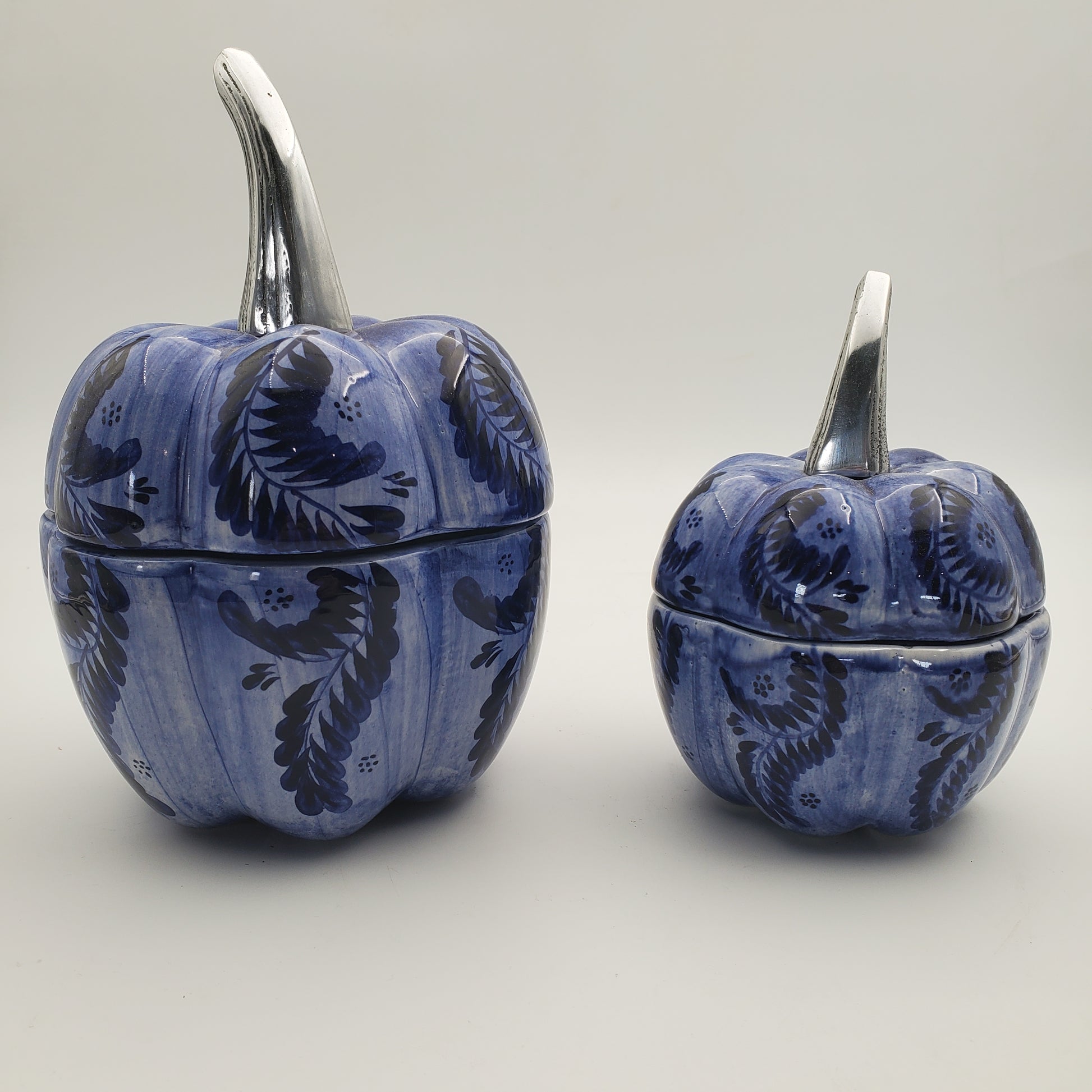 2pc Ceramic & Pewter Pumpkin Candy Bowl Set