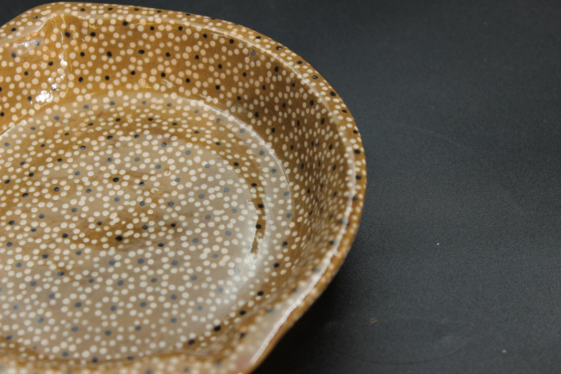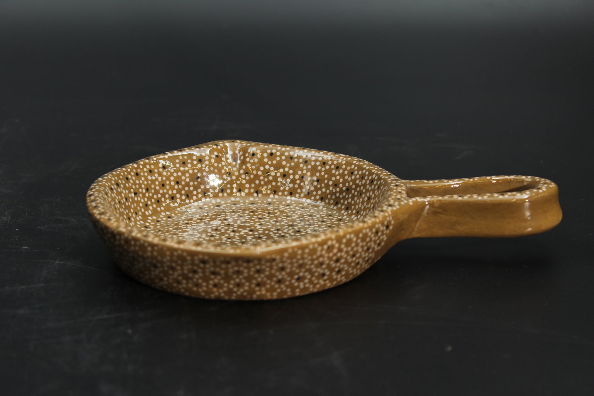 Beautiful mustard-patterned, handcrafted, clay-ceramic frying pan. Known for its good artisan quality, Mexican ceramic products are some of the best in the world. Thanks to centuries of cultural exchange coming all the way from the Arabian peninsula, and then passing through the Iberic peninsula, Mexican ceramic artists have perfected and achieved a unique method that yields exquisite designs that will elevate the perception of your home.