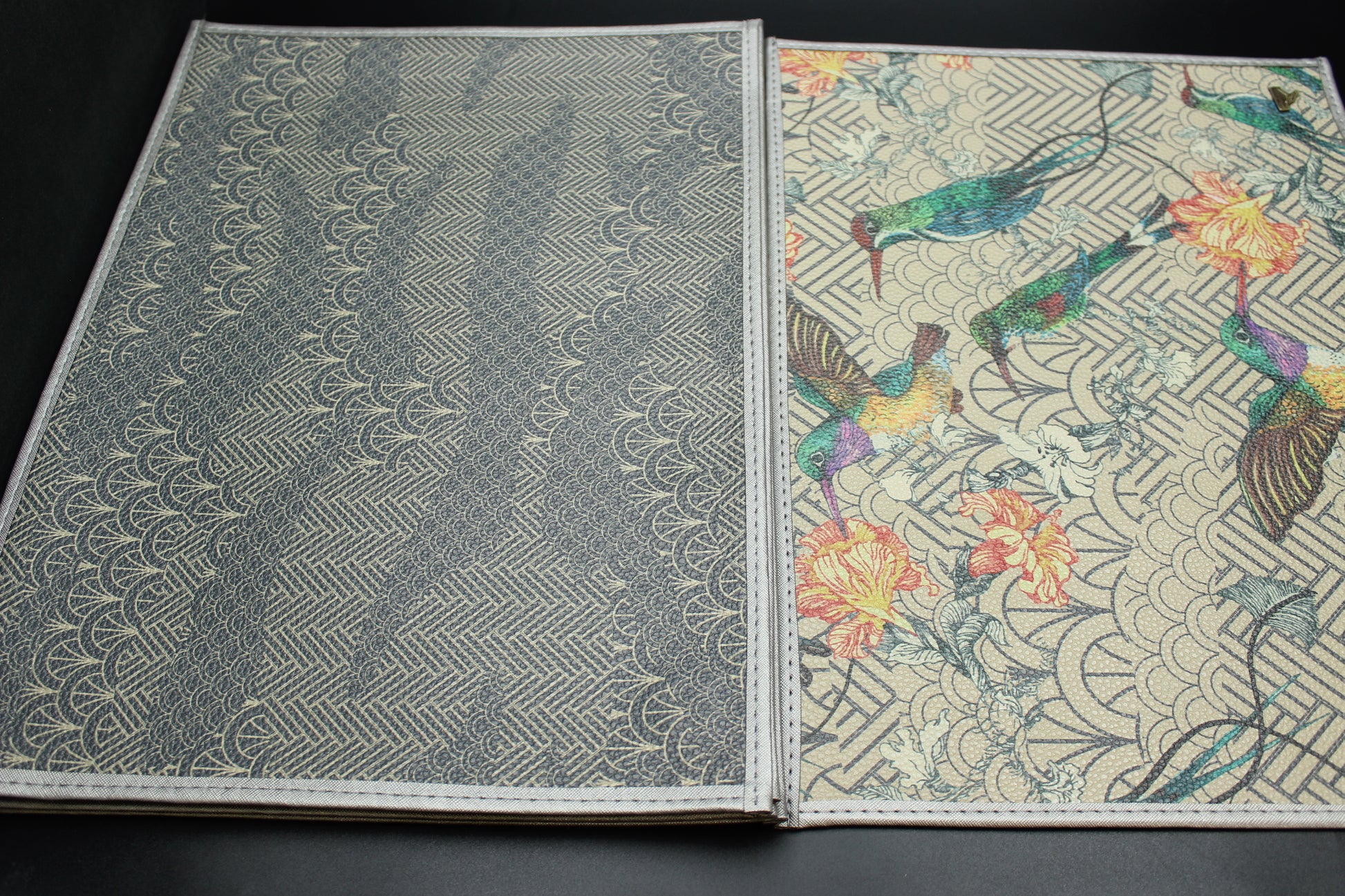 Beautiful multicolored hummingbird synthetic leather placemat set. (6 rectangular mats) Dual-sided with 2 different designs.