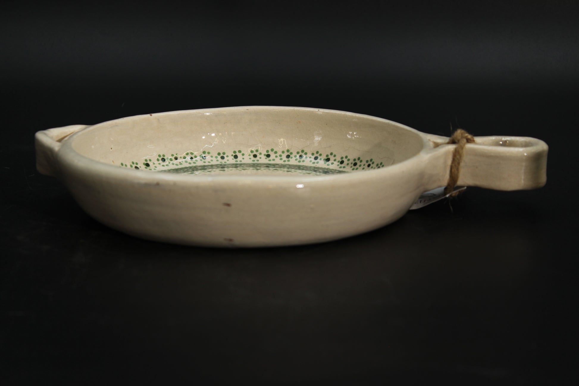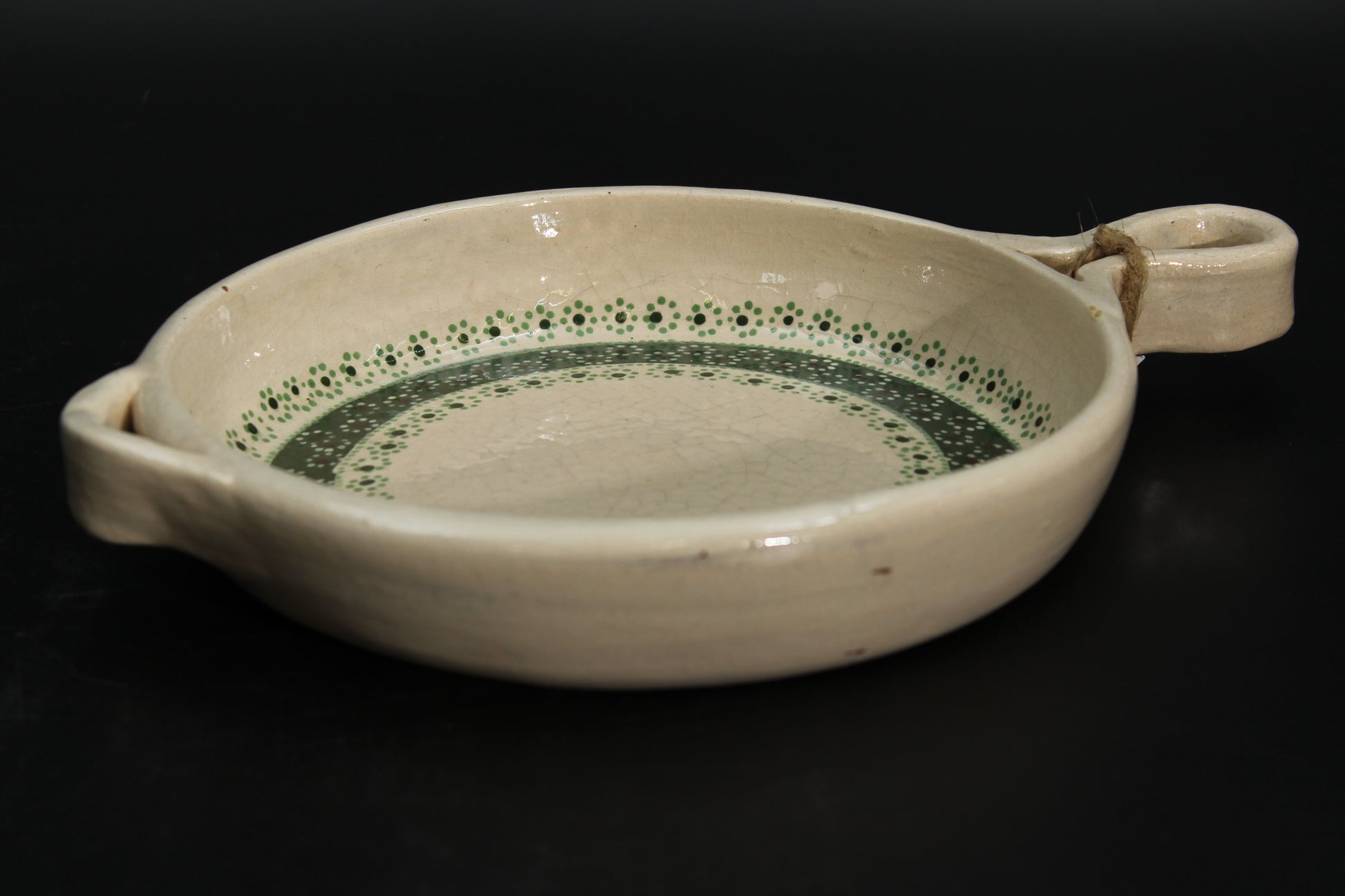 Beautiful beige-patterned, handcrafted, clay-ceramic frying pan. Known for its good artisan quality, Mexican ceramic products are some of the best in the world. Thanks to centuries of cultural exchange coming all the way from the Arabian peninsula, and then passing through the Iberic peninsula, Mexican ceramic artists have perfected and achieved a unique method that yields exquisite designs that will elevate the perception of your home.