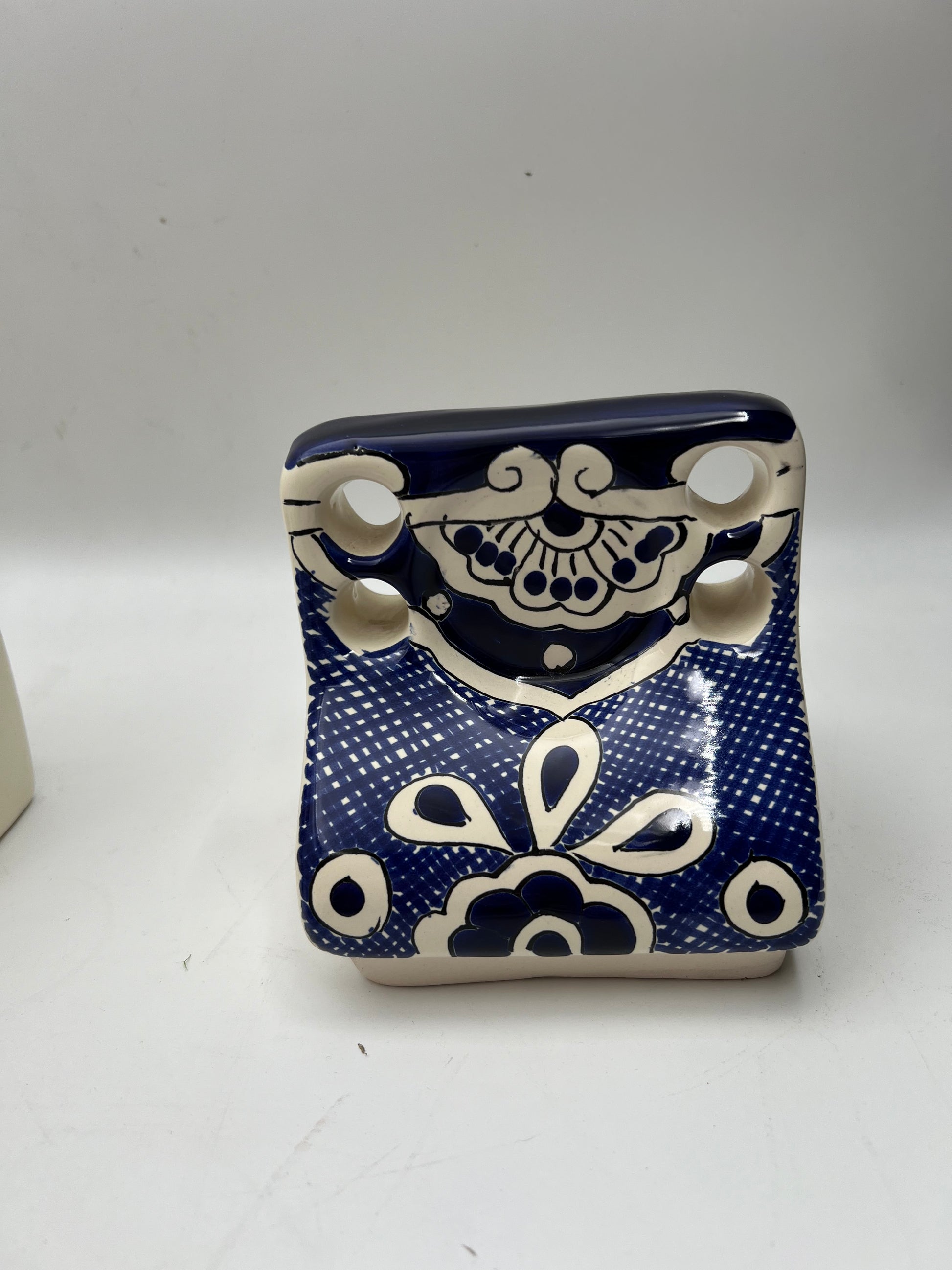 Beautiful blue handcrafted bathroom hardware set made from Mexican Talavera. Known for its good artisan quality, Mexican Talavera ceramic products are part of the best of the world. Thanks to centuries of a huge cultural swap coming all the way from the Arabian peninsula, and then passing through the Iberic peninsula, Mexican Talavera artists have perfected and achieved a unique method that yields some fascinating and beautiful designs that will elevate the perception of your home.