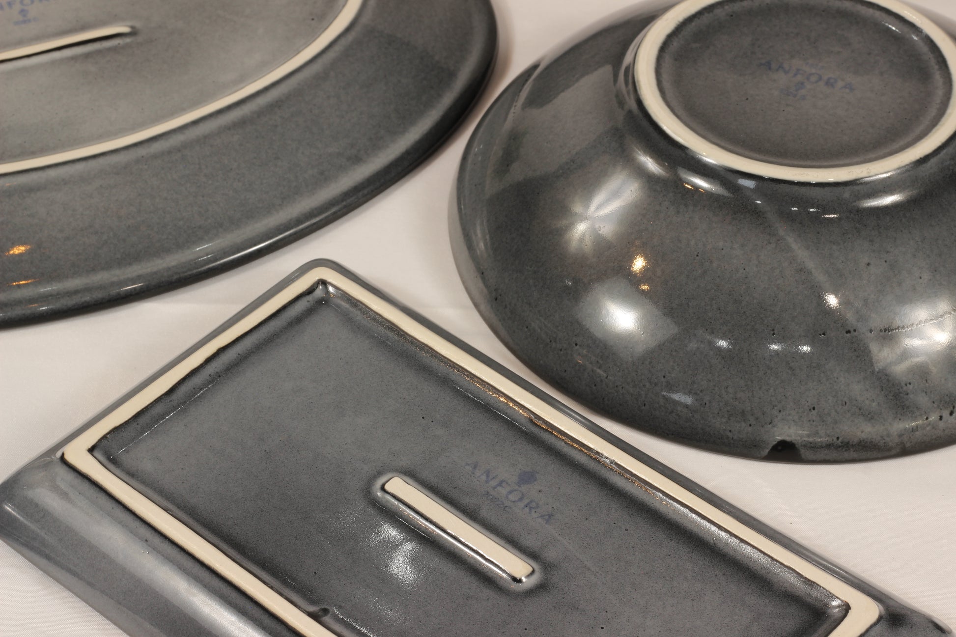 Crafted in Hidalgo, Mexico by the renowned ceramic house Anfora, this 16-piece dining set brings elegance, durability, and versatility to your table. Featuring Anfora’s signature "Brillante" glossy glaze, each piece is finished in a beautiful grey tone accented with specks of black — a timeless look that complements both casual meals and formal gatherings. Designed to meet restaurant-grade standards, this set is as tough as it is stylish — perfect for everyday family use, dinner parties, or upscale hospitality settings.