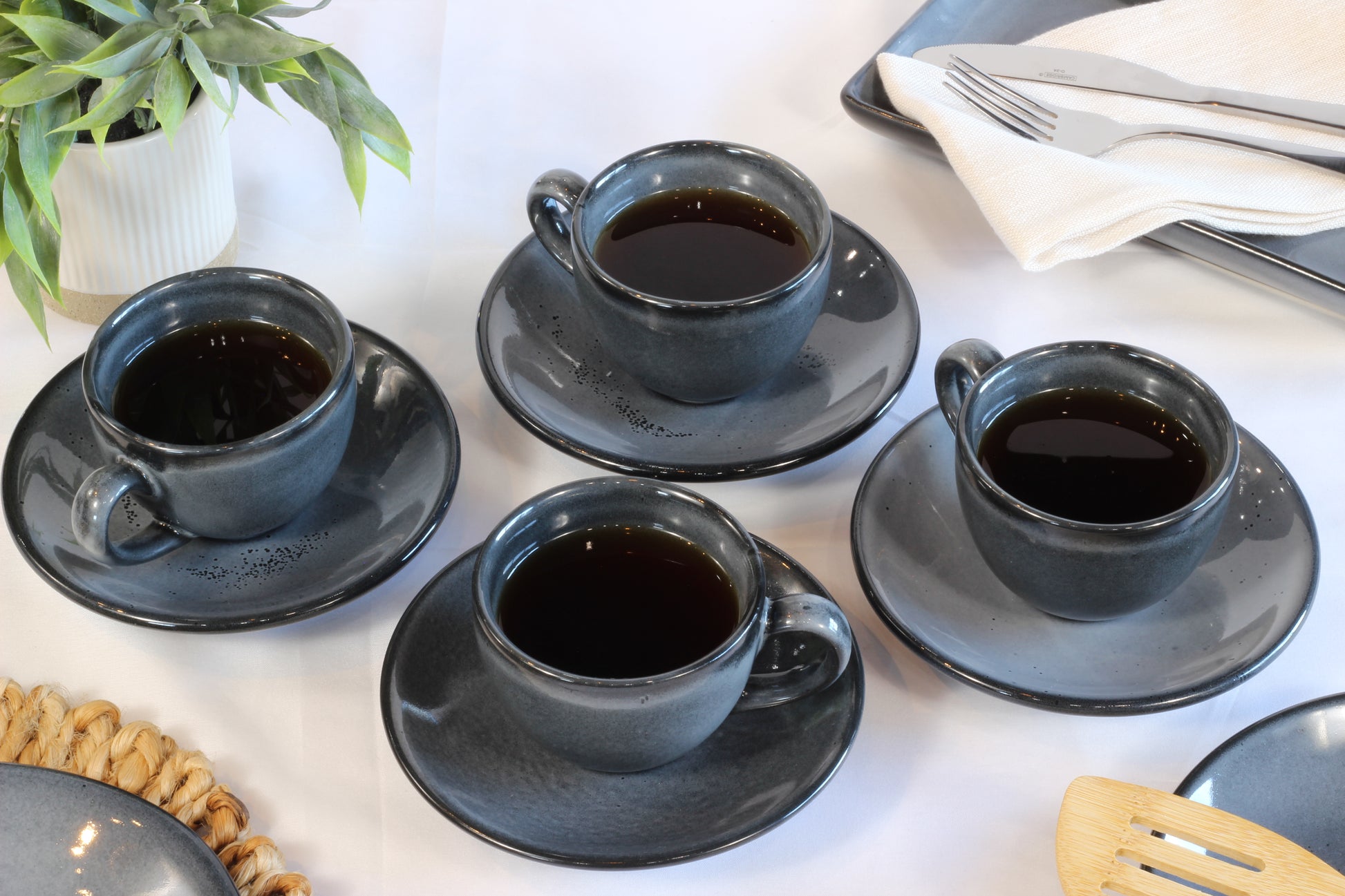 Start your mornings or wind down your evenings with the Cappuccino Quad Set from Anfora’s Denali Grey collection. This elegant two-piece mug and saucer bundle brings café-style sophistication into your home. Handmade in Hidalgo, Mexico by Anfora — a name trusted by restaurants around the world — each piece is finished in a high-gloss “Brillante” glaze with a soft grey tone and subtle black speckles. Ideal for gifting, cozy kitchens, or coffee stations with style.