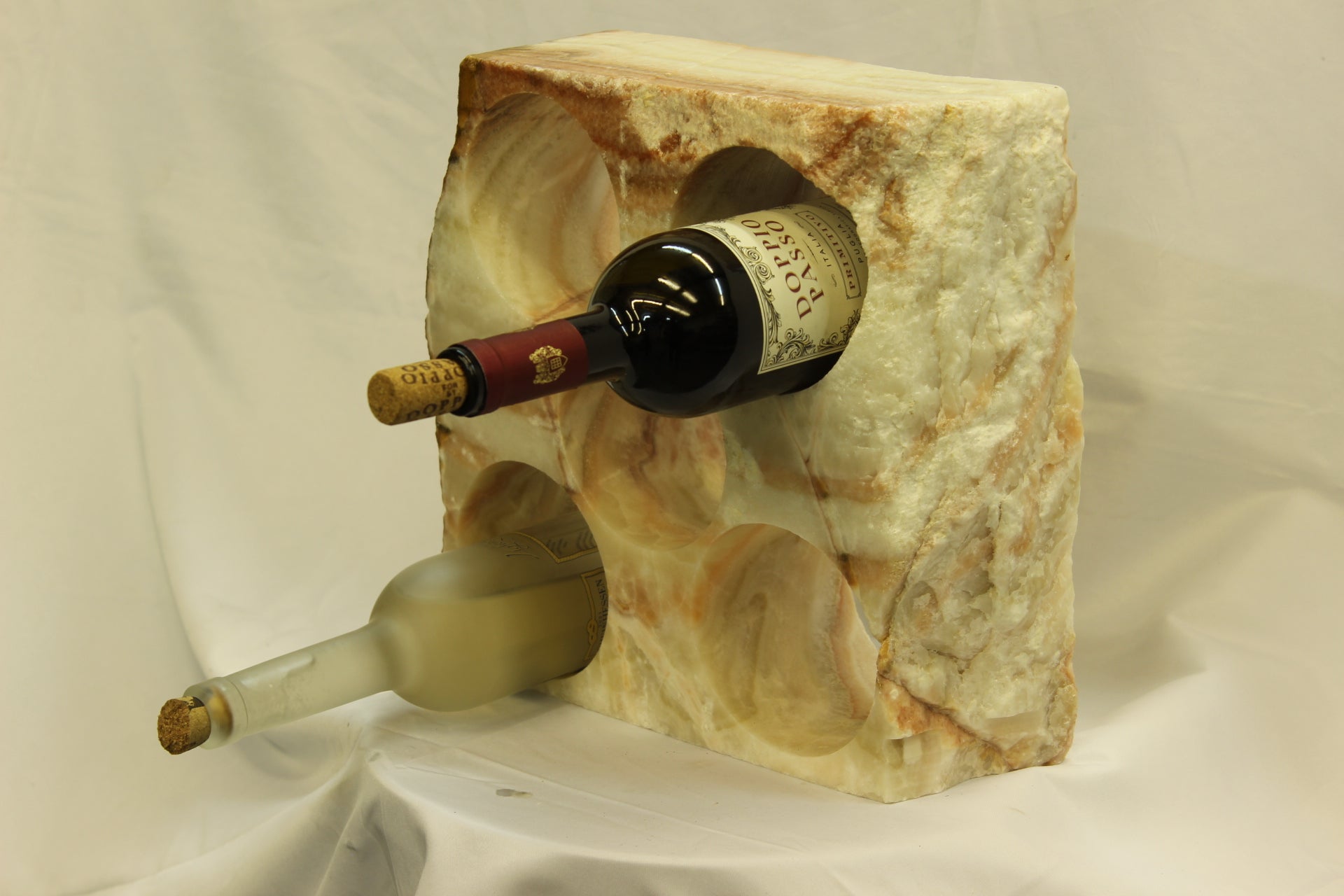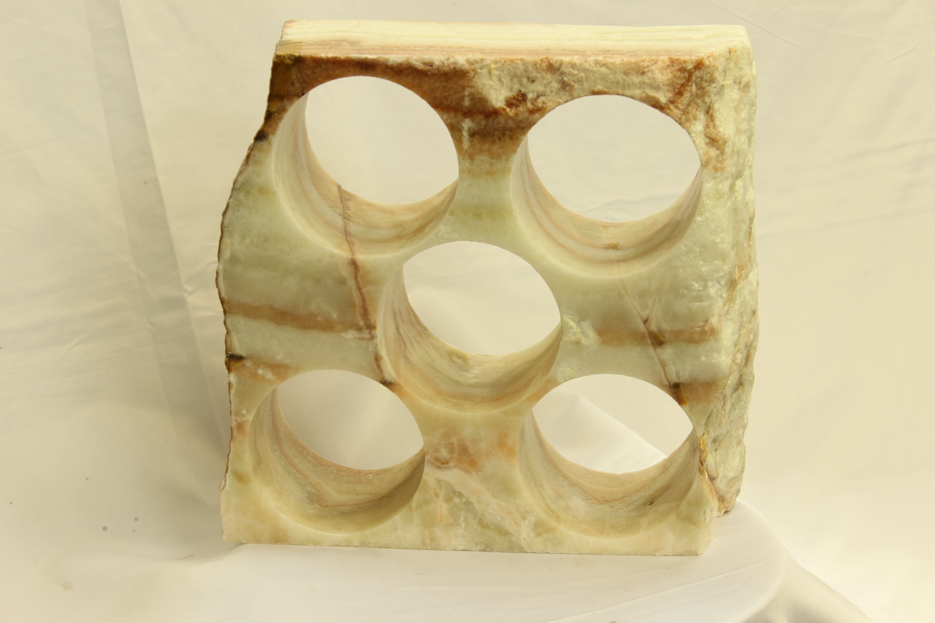Beautiful beige, red & black handcrafted decorative 5 bottle onyx wine rack. Traditionally called 'cavas' in Mexico, this piece was hand-selected and imported from MX.