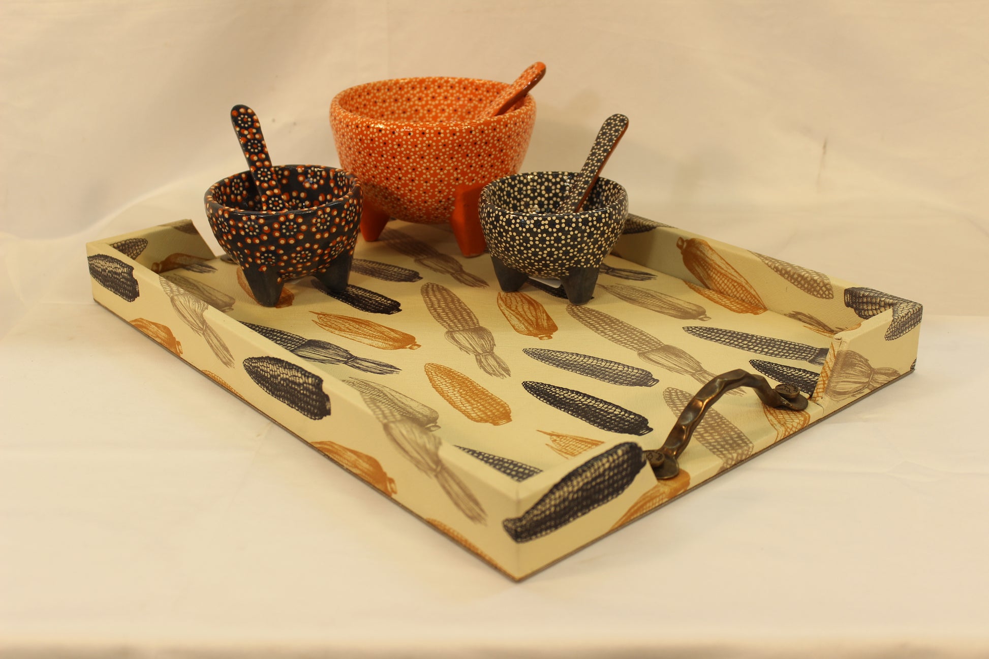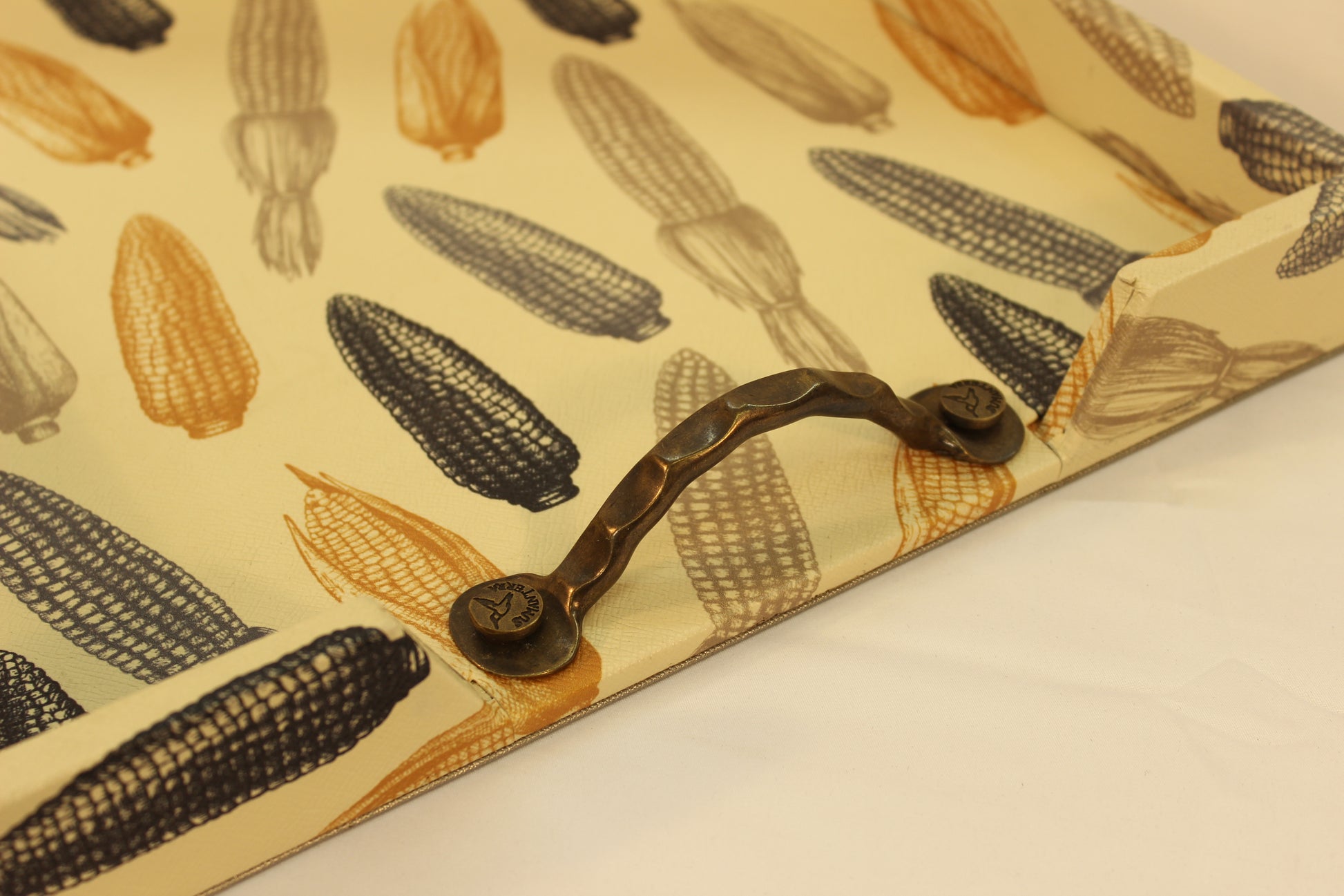 Beige Cornfield Serving Tray w/ Metal Handles