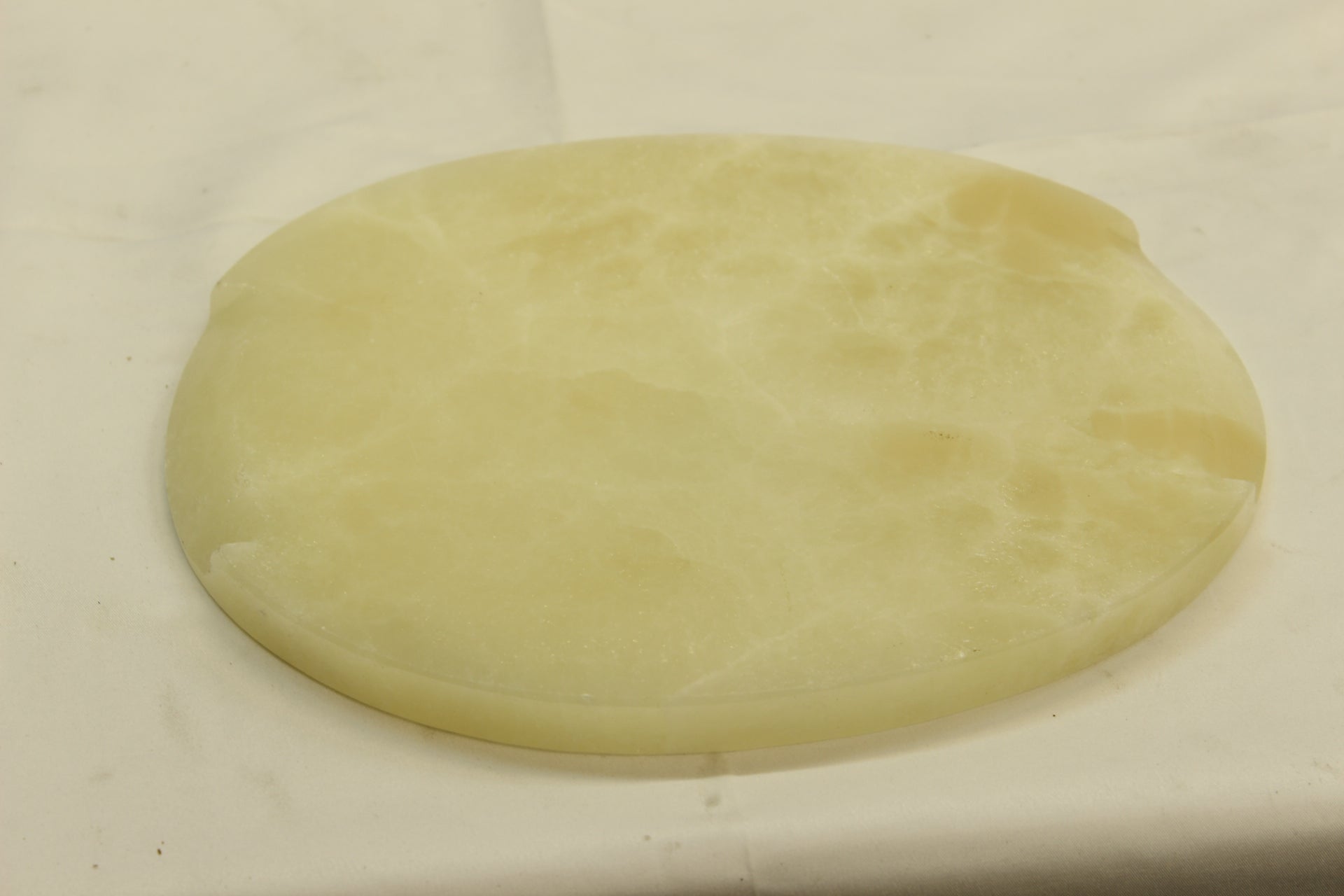 Beige onyx handcrafted decorative tray. Good for serving food, as a flower pot tray or just a cute decor piece.