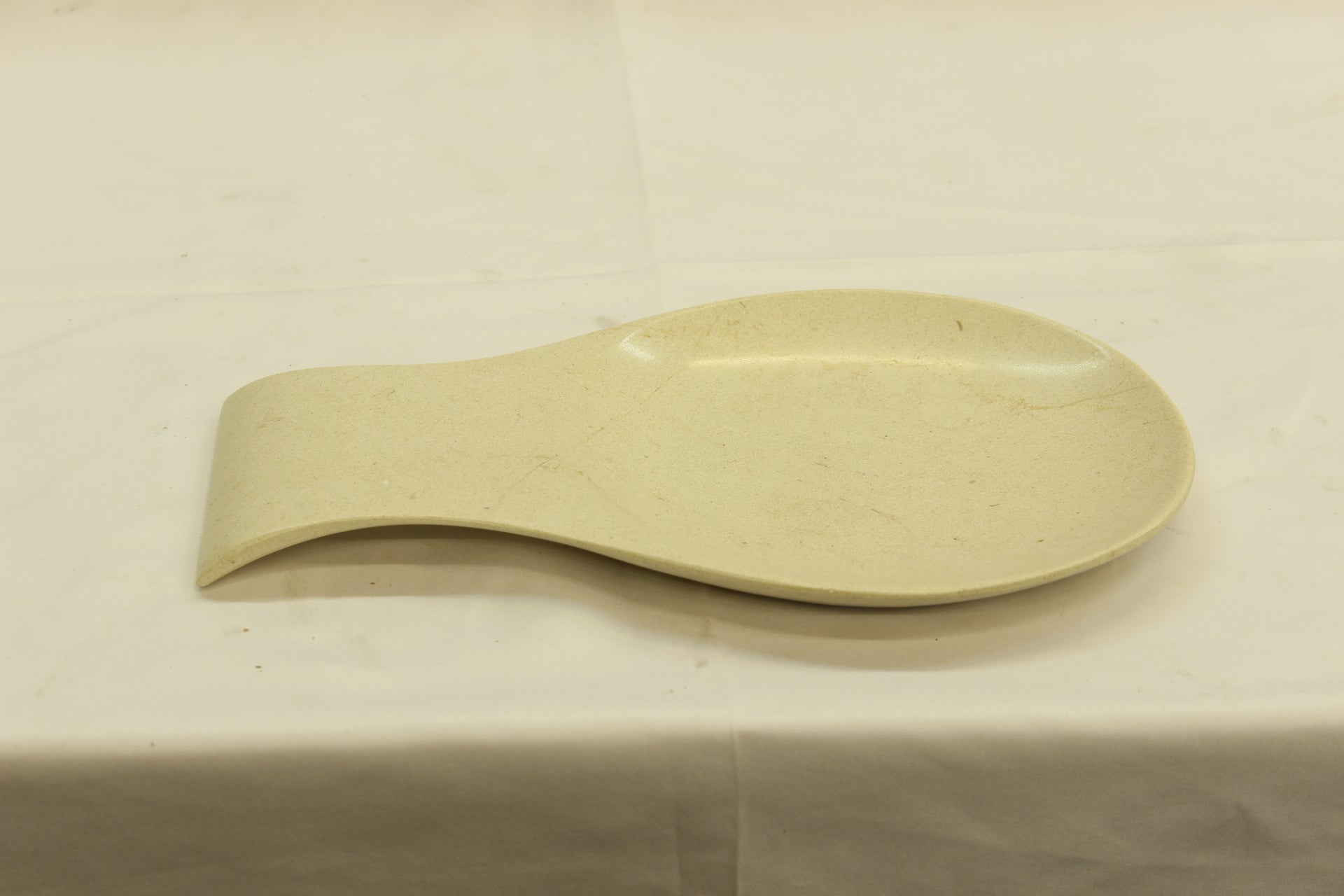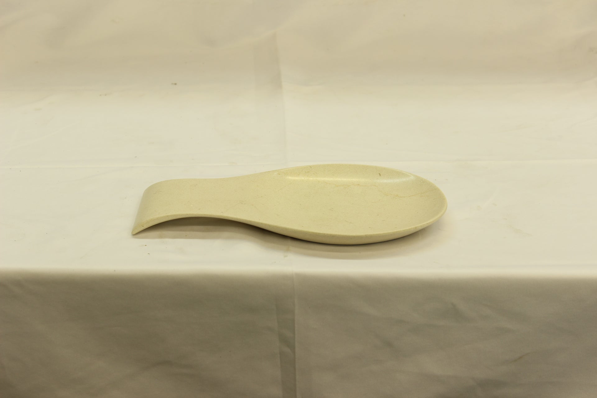 Beige marble rest for cooking spoons & spatulas. Also makes a cute decorative piece.