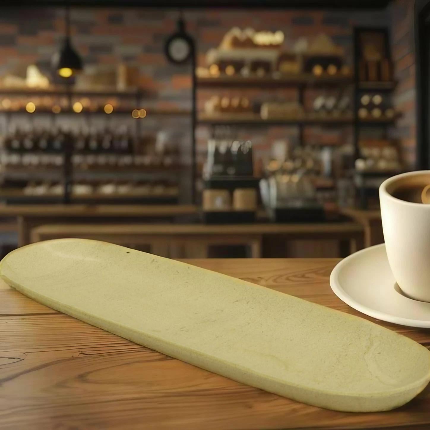 Beige marble handcrafted decorative tray. Good for fresh bread, keys & wallet storage or just a cute decor piece.
