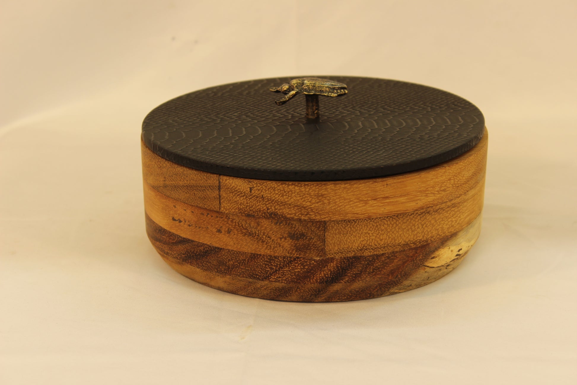 Beautiful black snakeskin & beetle wooden tortilla holder.