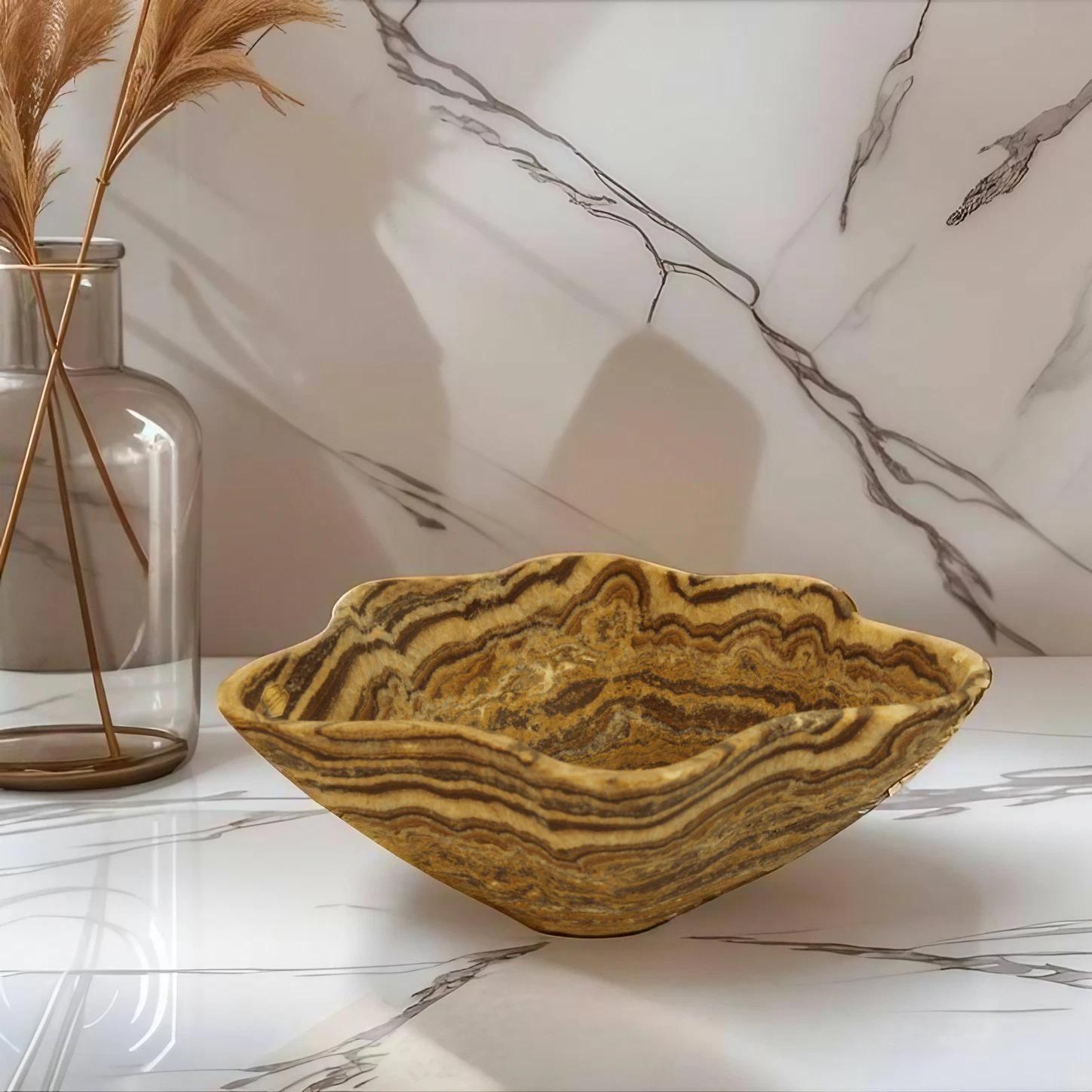 Red and Orange handcrafted onyx centerpiece. This precious stone has been carefully crafted for millions of years by the artisans that are our Mexican volcanoes. Each piece is unique in its nature. No extracted stone is the same as another. Our Mexican artists make sure to pick the most beautiful samples from our volcanic deposits, and therefore craft astonishing pieces of art.