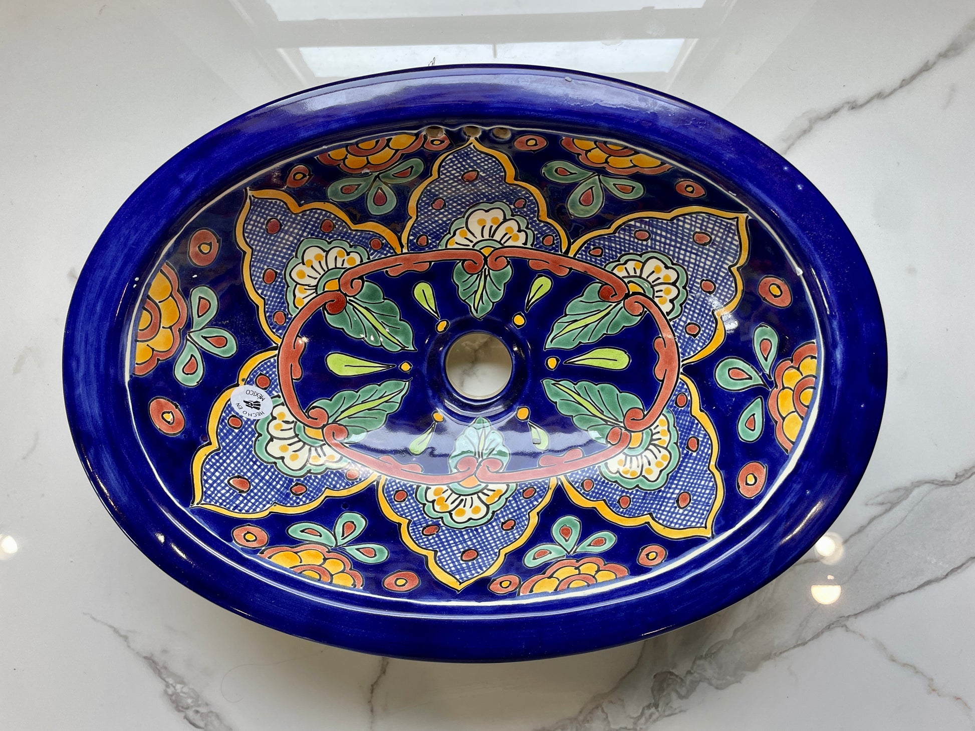 Beautiful blue and multicolor handcrafted and patterned sink made from Mexican Talavera. Known for its good artisan quality, Mexican Talavera ceramic products are part of the best of the world. Thanks to centuries of a huge cultural swap coming all the way from the Arabian peninsula, and then passing through the Iberic peninsula, Mexican Talavera artists have perfected and achieved a unique method that yields some fascinating and beautiful designs that will elevate the perception of your home.
