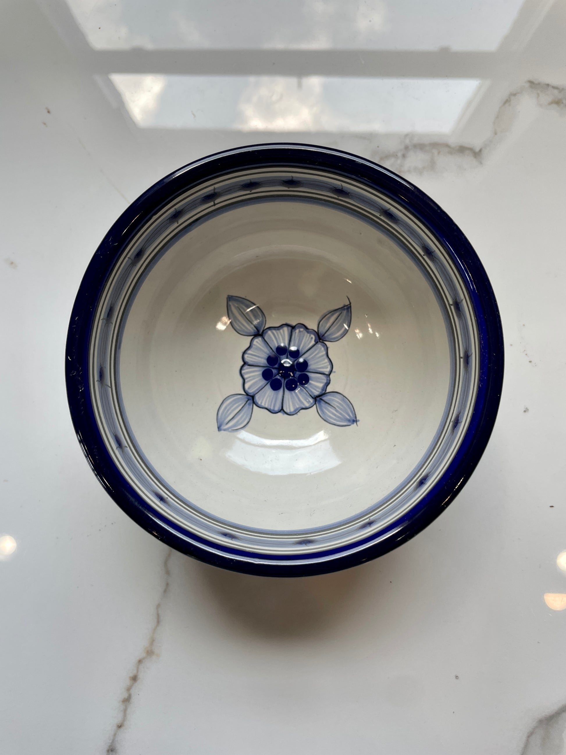 Beautiful blue and white handcrafted and patterned bowl set made from Mexican Talavera. Known for its good artisan quality, Mexican Talavera ceramic products are part of the best of the world. Thanks to centuries of a huge cultural swap coming all the way from the Arabian peninsula, and then passing through the Iberic peninsula, Mexican Talavera artists have perfected and achieved a unique method that yields some fascinating and beautiful designs that will elevate the perception of your home.