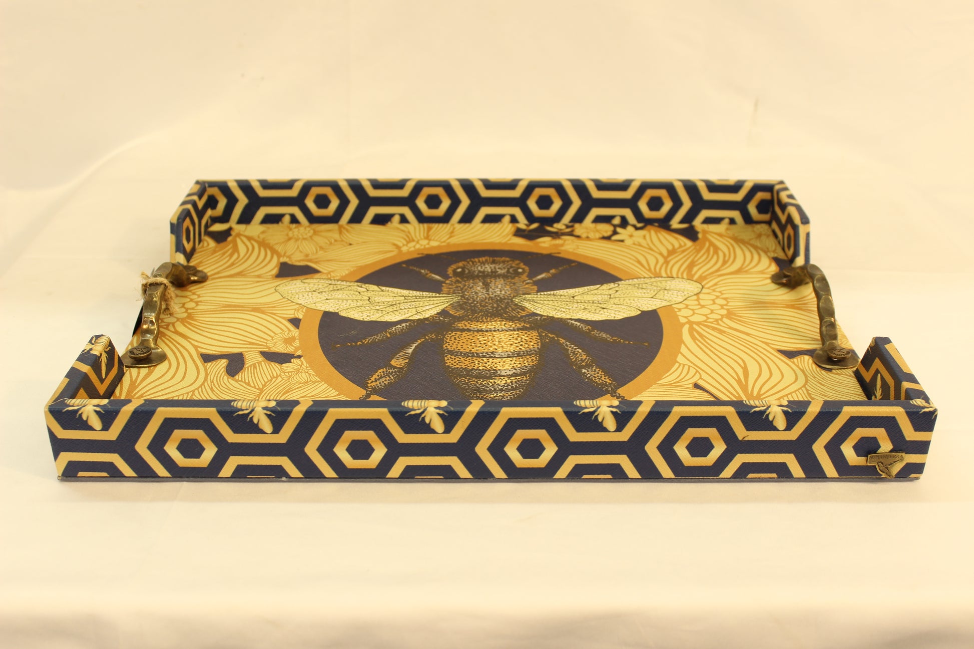 Blue Beehive Serving Tray w/ Metal Handles