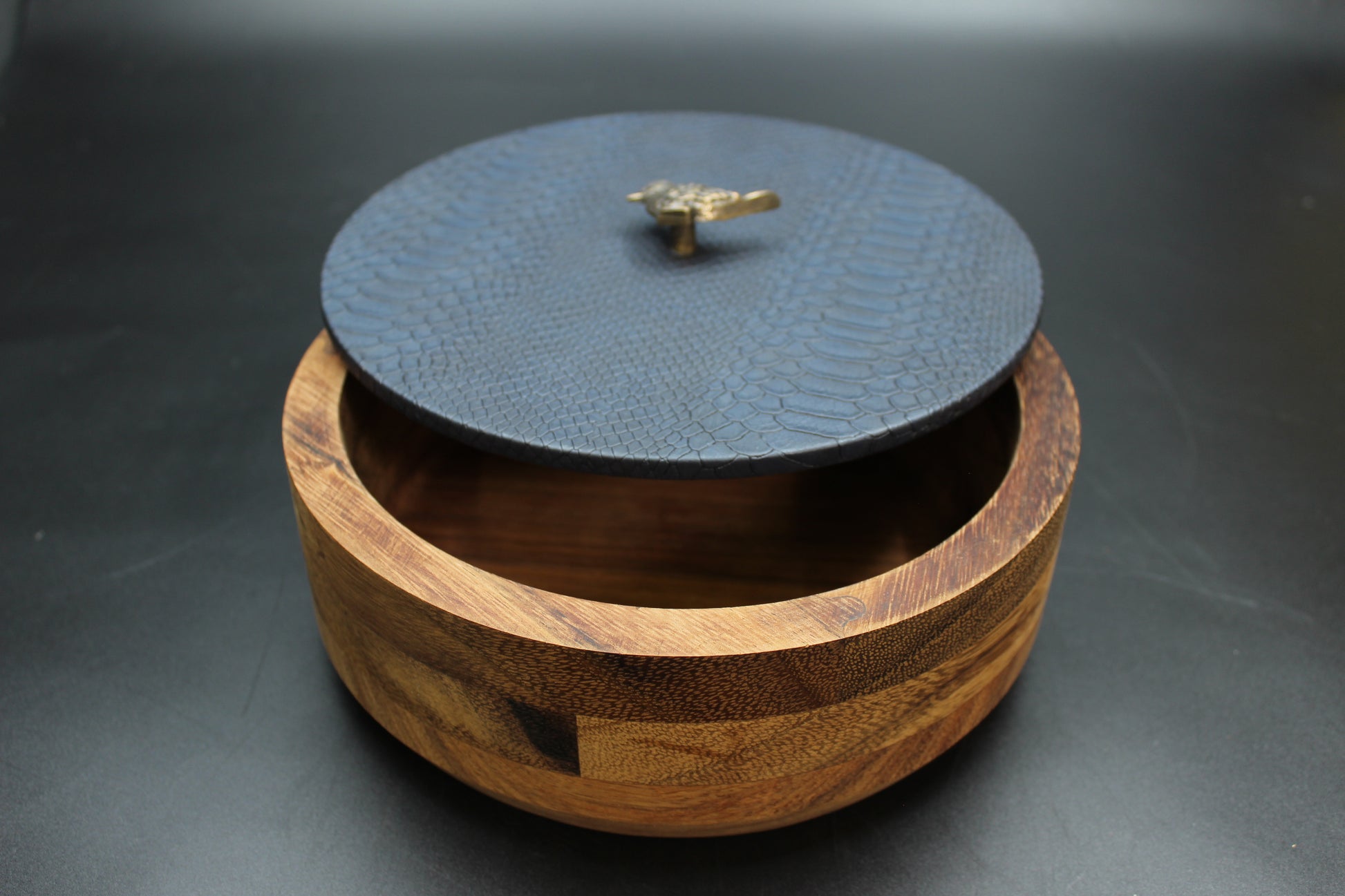 Beautiful blue snakeskin & bird wooden tortilla holder.