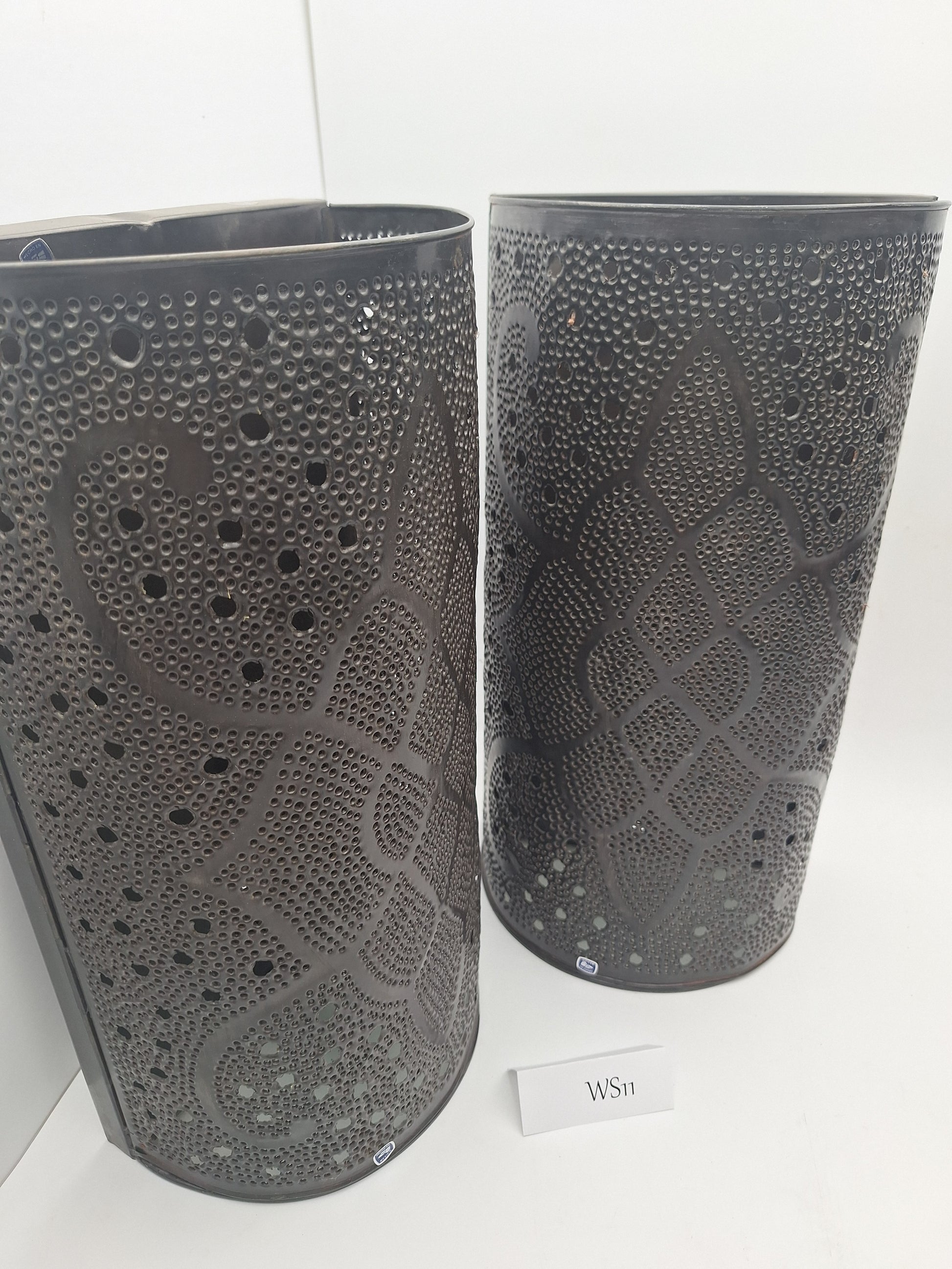 Beautiful brown tin handcrafted sconce lamp set. Tin artisans have a very unique handcrafting process when it comes to creating these beautiful tin lamps with fascinating colors and patterns. Generations of cultural artisan swap between European nations and native Mexican techniques have yielded a result that can't be found anywhere else in the world.