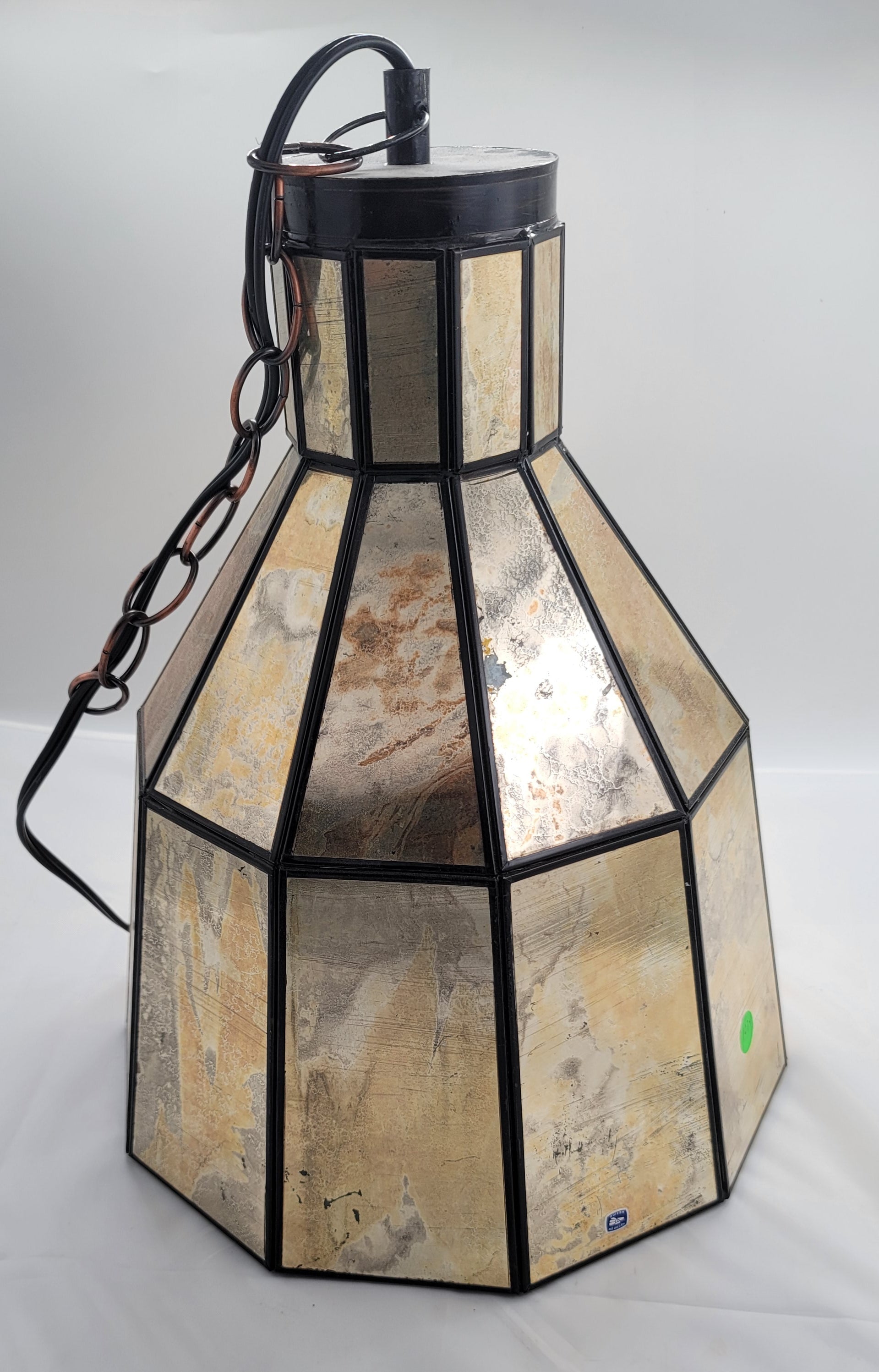 Beautiful golden handcrafted ceiling tin lamp. Tin artisans have a very unique handcrafting process when it comes to creating these beautiful tin lamps with fascinating colors and patterns. Generations of cultural artisan swap between European nations and native Mexican techniques have yielded as a result some one of a kind lamps that can't be found anywhere else in the world.