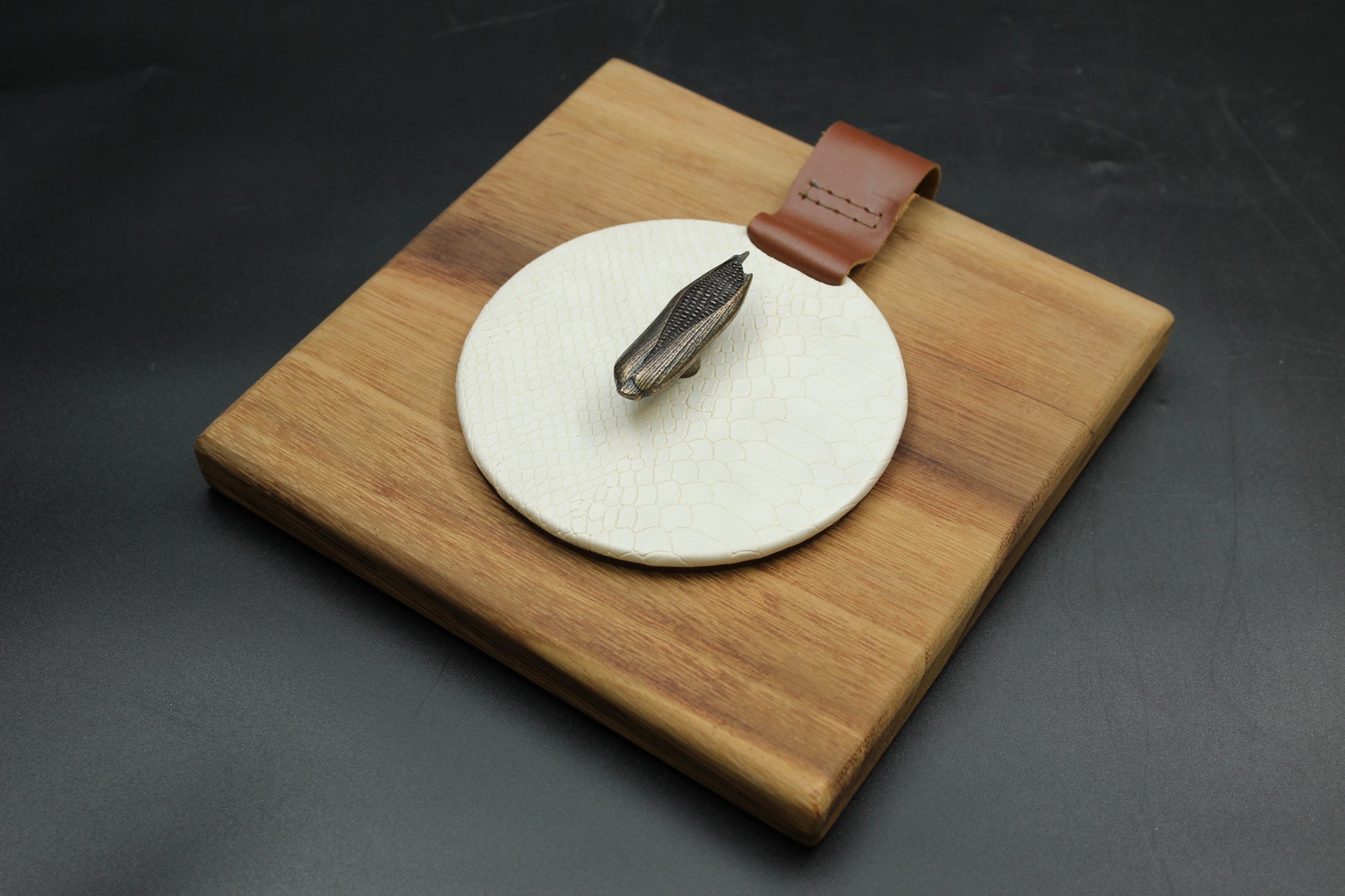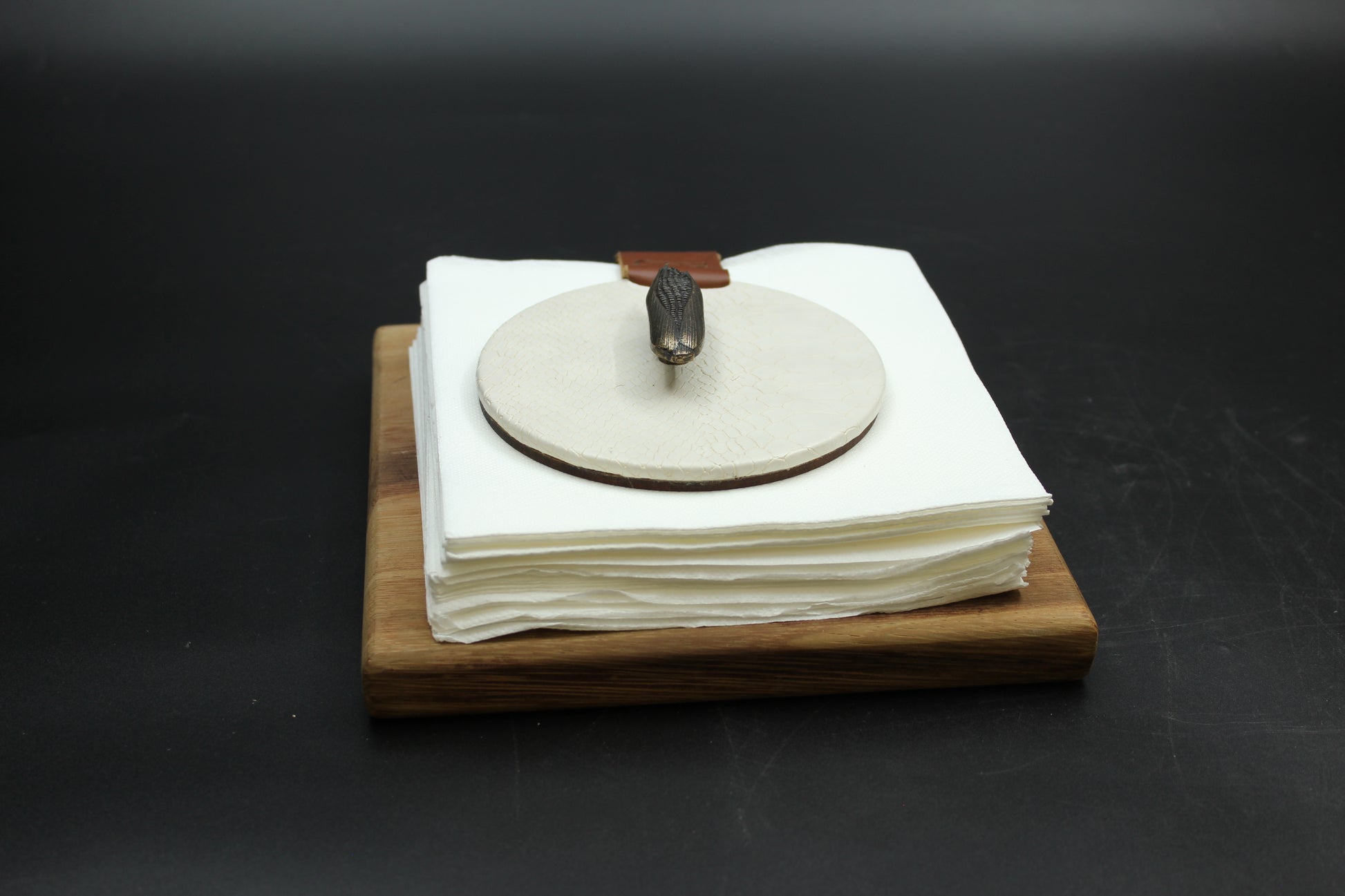 Beautiful beige-patterned, synthetic leather napkin holder.