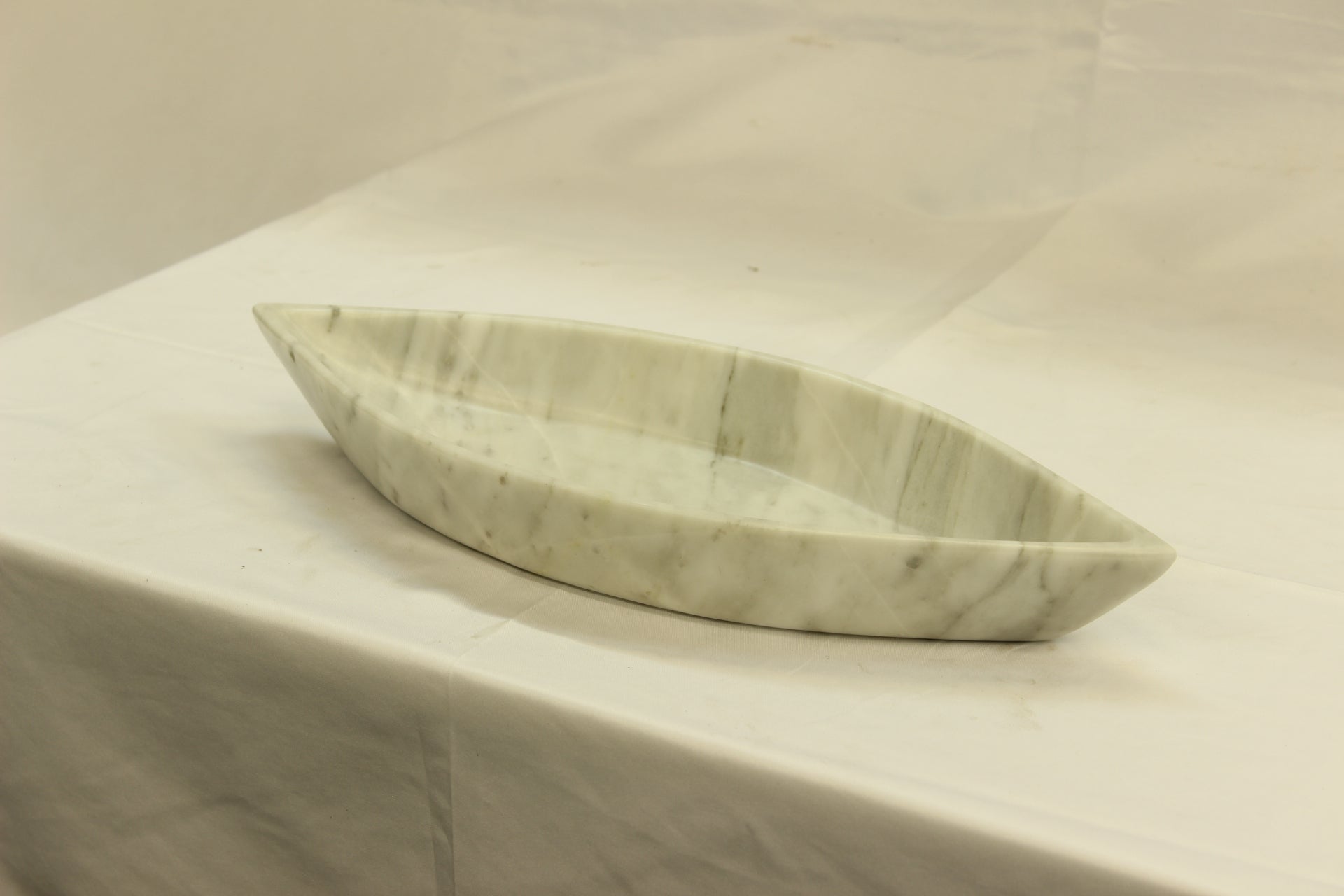 Handcrafted and one-of-a-kind. Beautiful white canoe marble decorative/food tray. Use for deli snacks, key & wallet storage or just a cute decorative piece.