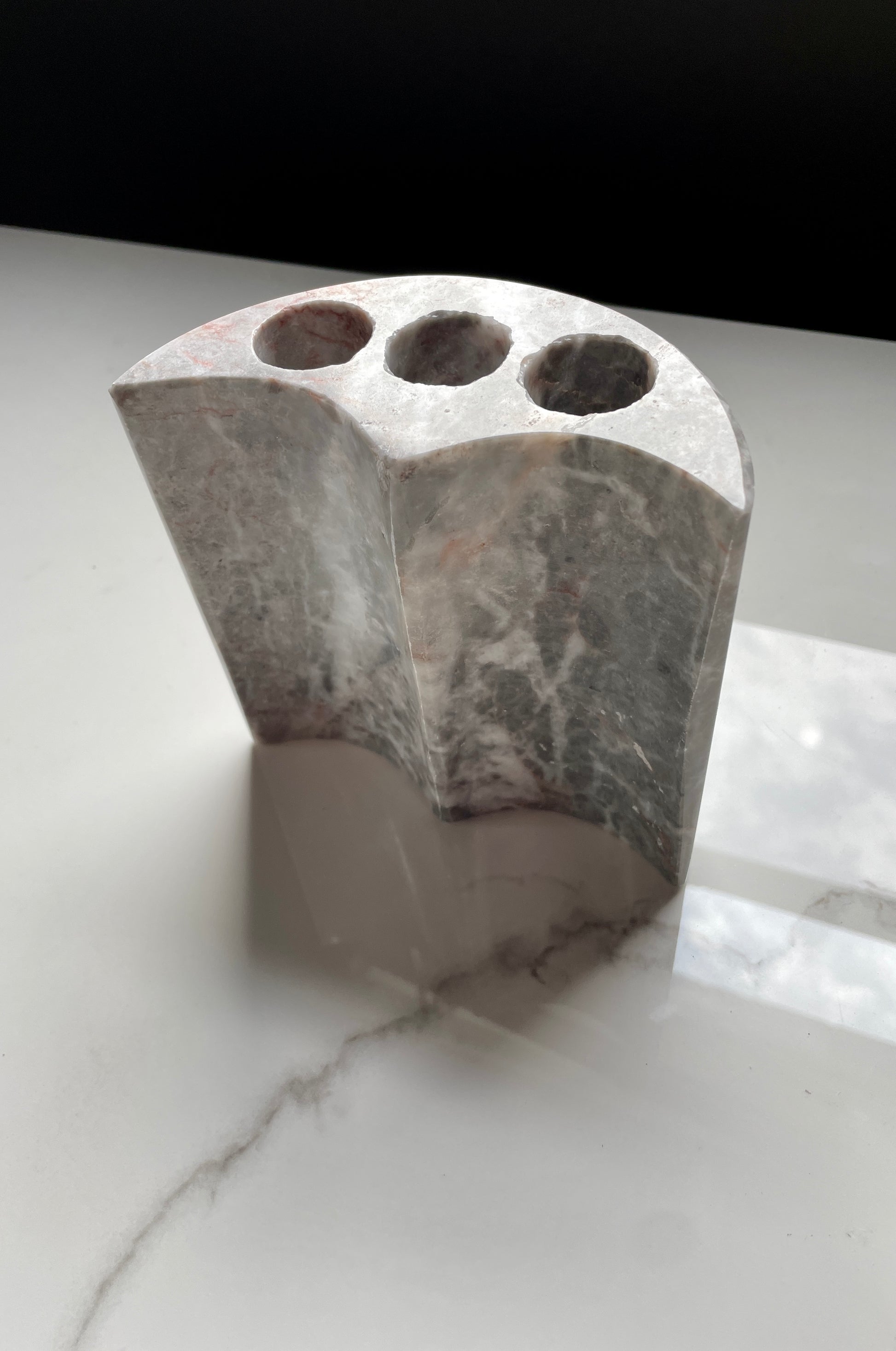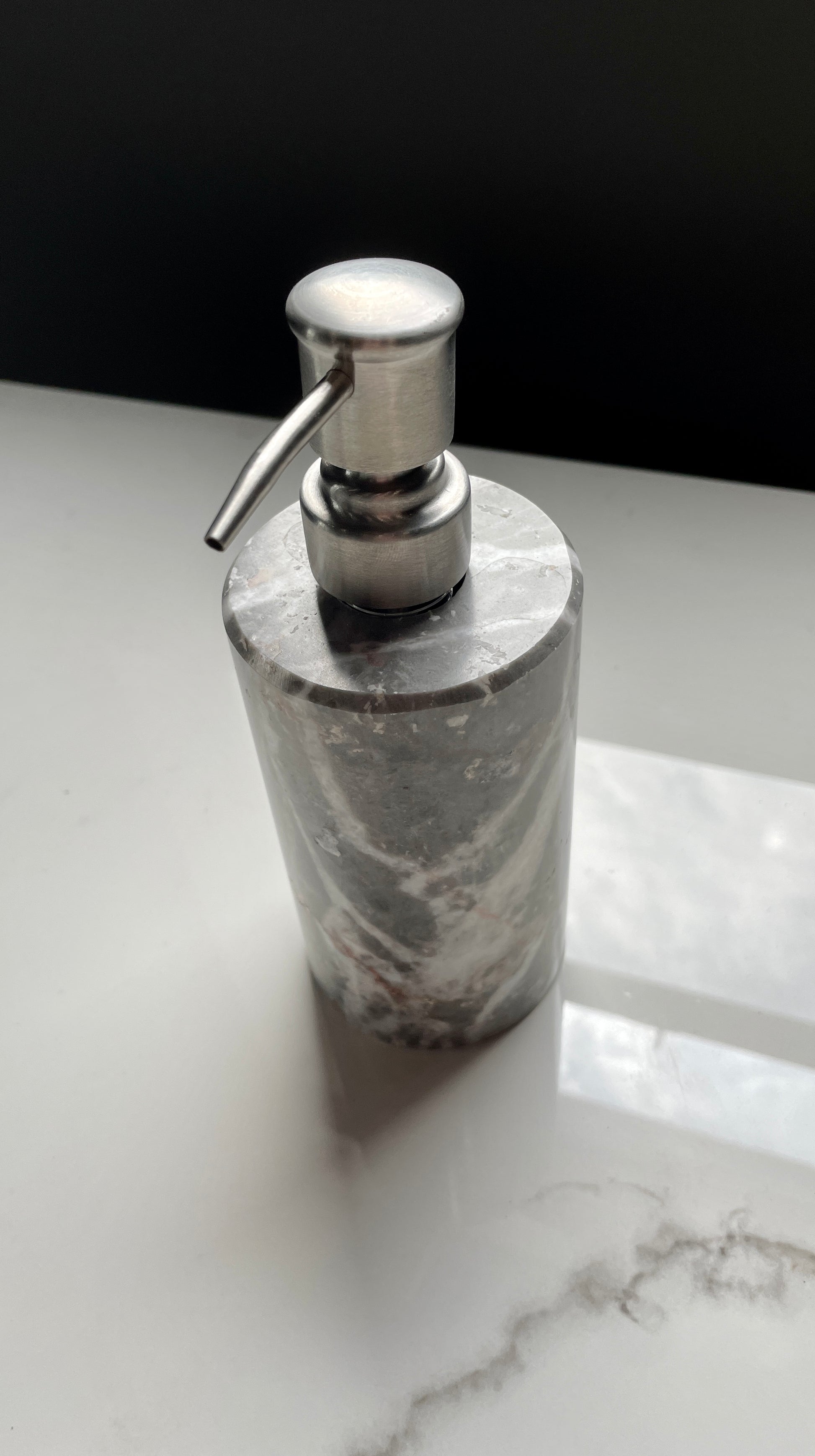 Beautiful gray handcrafted decorative onyx bathroom set. This precious stone has been carefully crafted for millions of years by the artisans that are our Mexican volcanoes, Each piece is unique in its nature. No extracted stone is the same as other ones, so our Mexican artists make sure to pick the most beautiful ones from our volcanic deposits, and therefore craft some beautiful pieces of art that will change the way your home looks and feels. In the end, aren't the small things that make the difference?