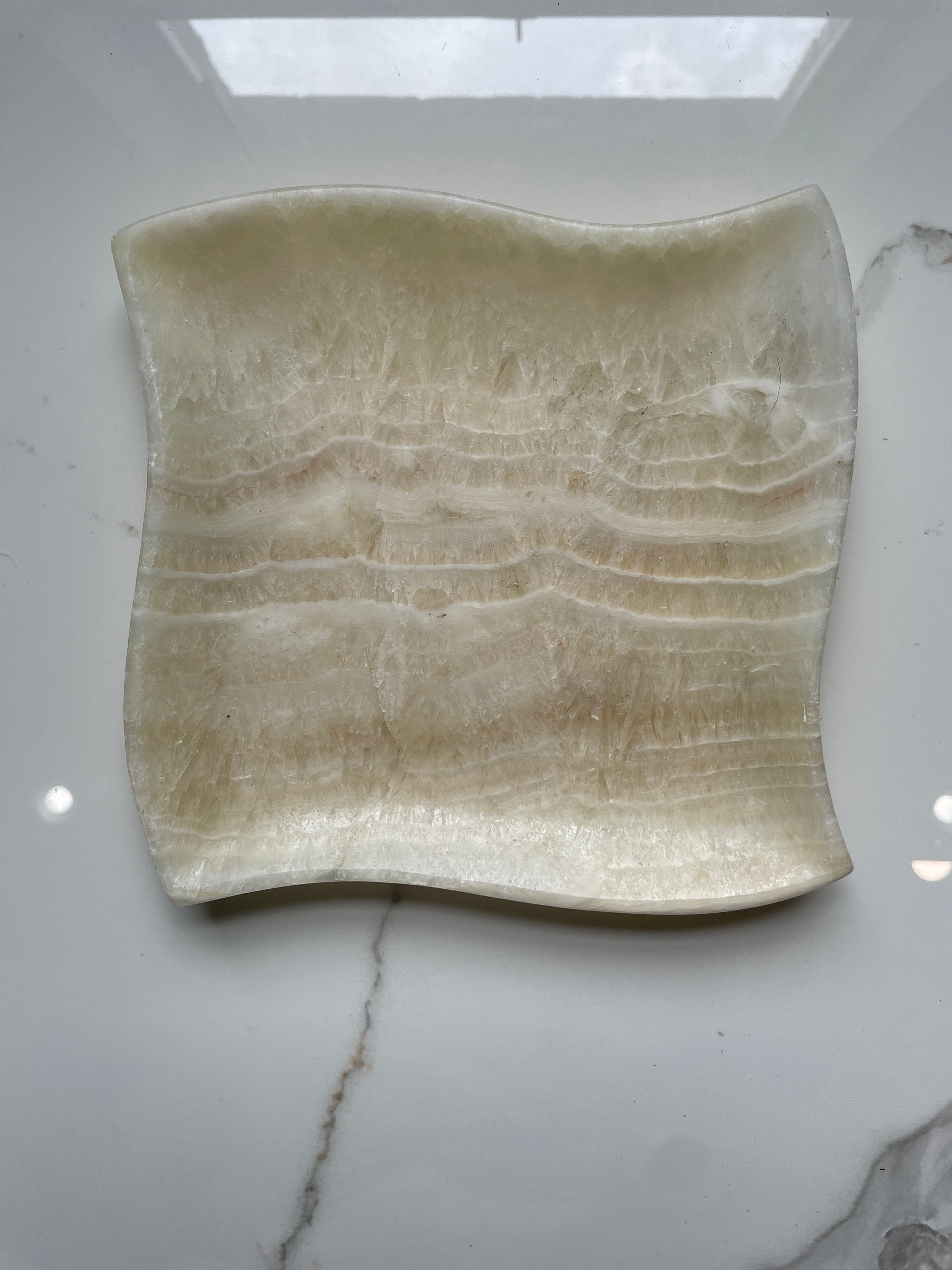 Beautiful beige handcrafted decorative onyx tray. This precious stone has been carefully crafted for millions of years by the artisans that are our Mexican volcanoes, Each piece is unique in its nature. No extracted stone is the same as other ones, so our Mexican artists make sure to pick the most beautiful ones from our volcanic deposits, and therefore craft some beautiful pieces of art that will change the way your home looks and feels. In the end, aren't the small things that make the difference?