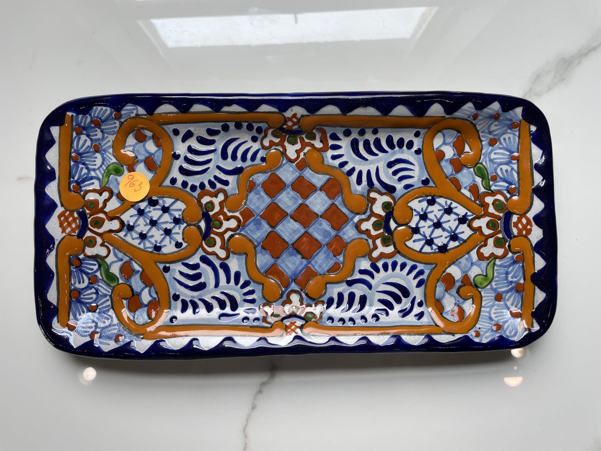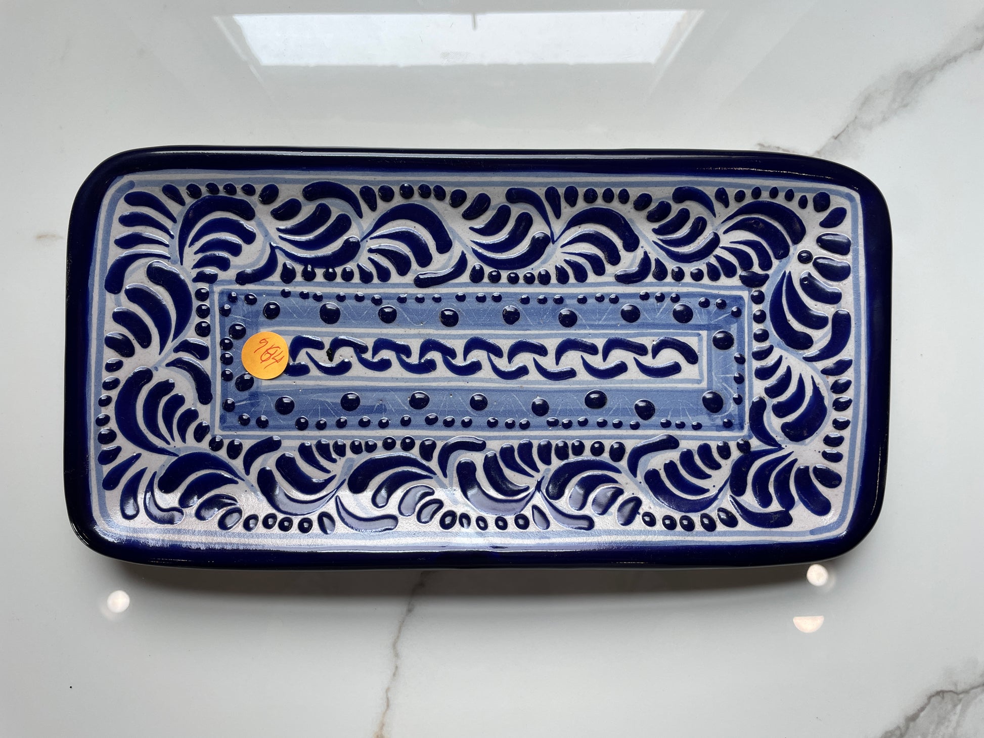 Beautiful blue and white handcrafted decorative Talavera tray set. Known for its good artisan quality, Mexican Talavera ceramic products are part of the best of the world. Thanks to centuries of a huge cultural swap coming all the way from the Arabian peninsula, and then passing through the Iberic peninsula, Mexican Talavera artists have perfected and achieved a unique method that yields some fascinating and beautiful designs that will elevate the perception of your home.