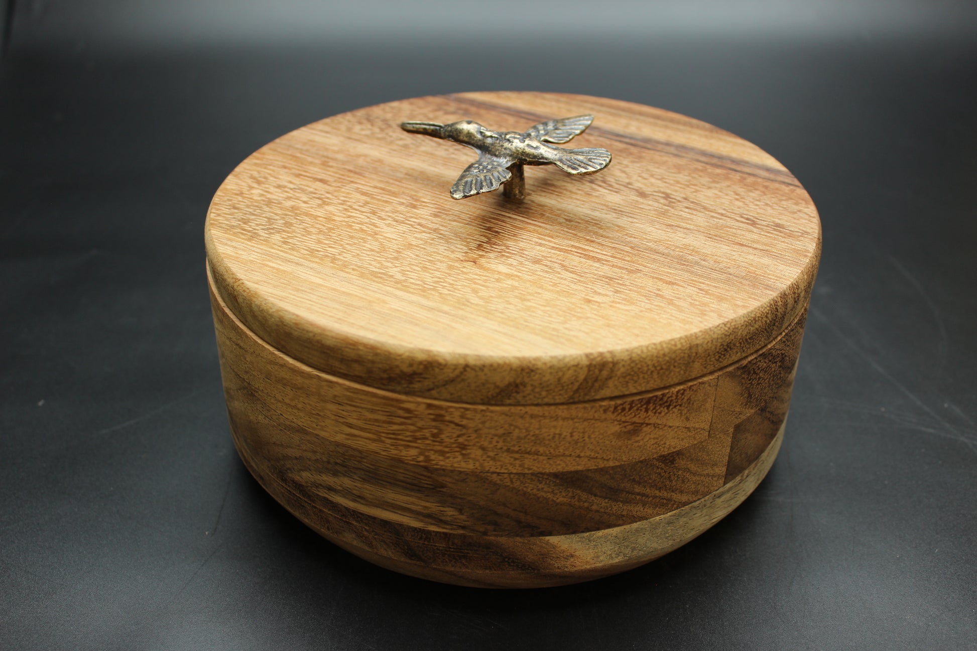 Beautiful parota wood & brass hummingbird tortilla holder. (Tortilero)