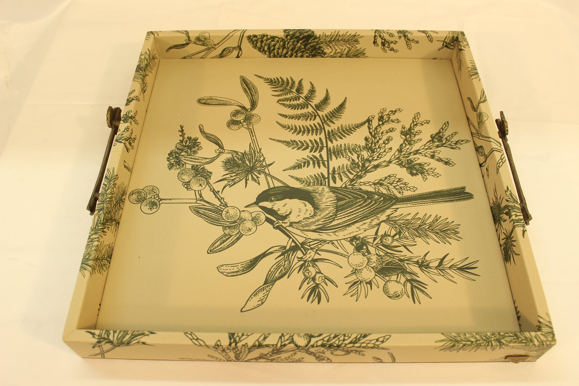Green Floral Serving Tray w/ Metal Handles