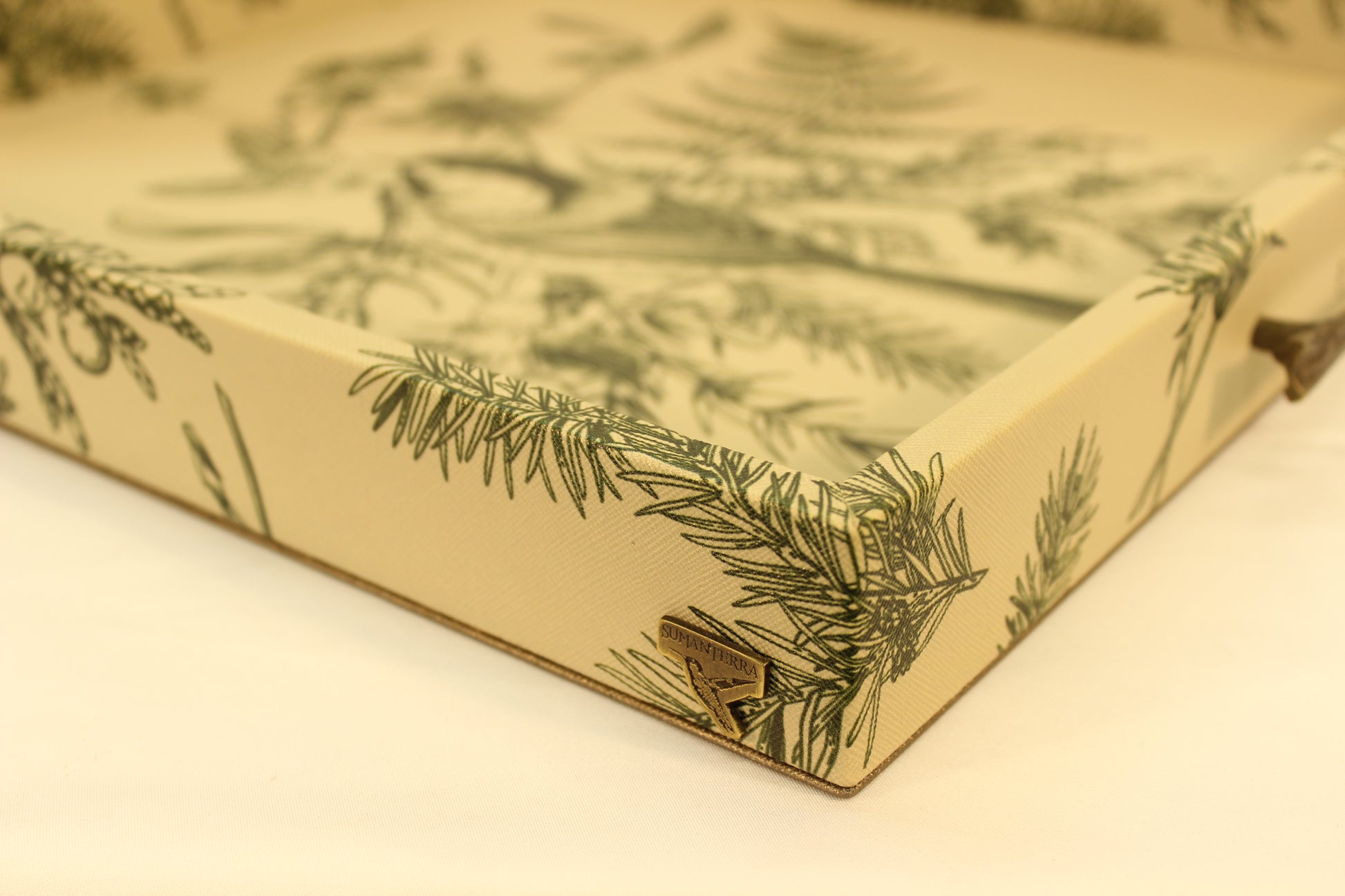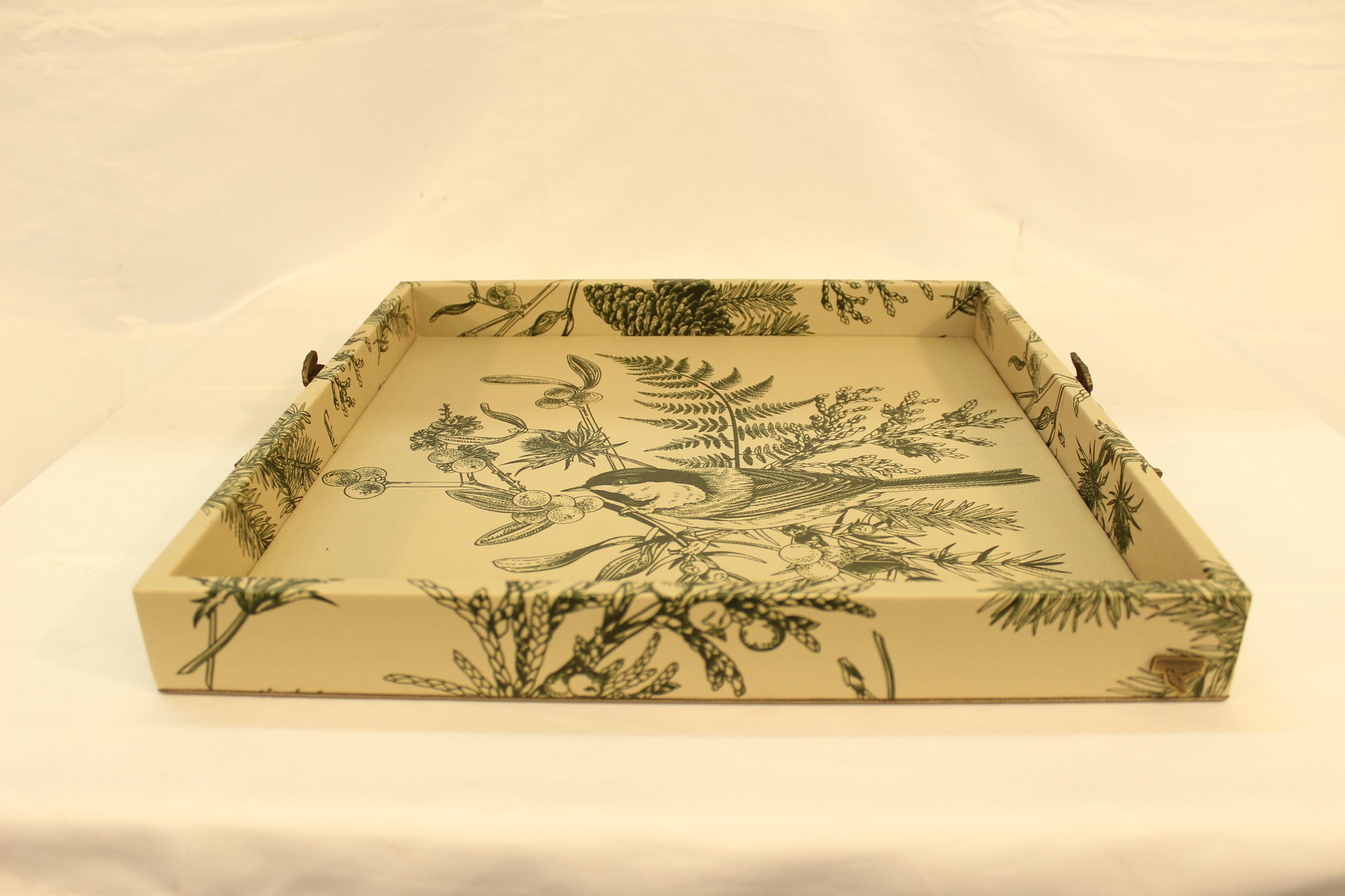 Beautiful beige & green, floral patterned, synthetic leather serving tray.