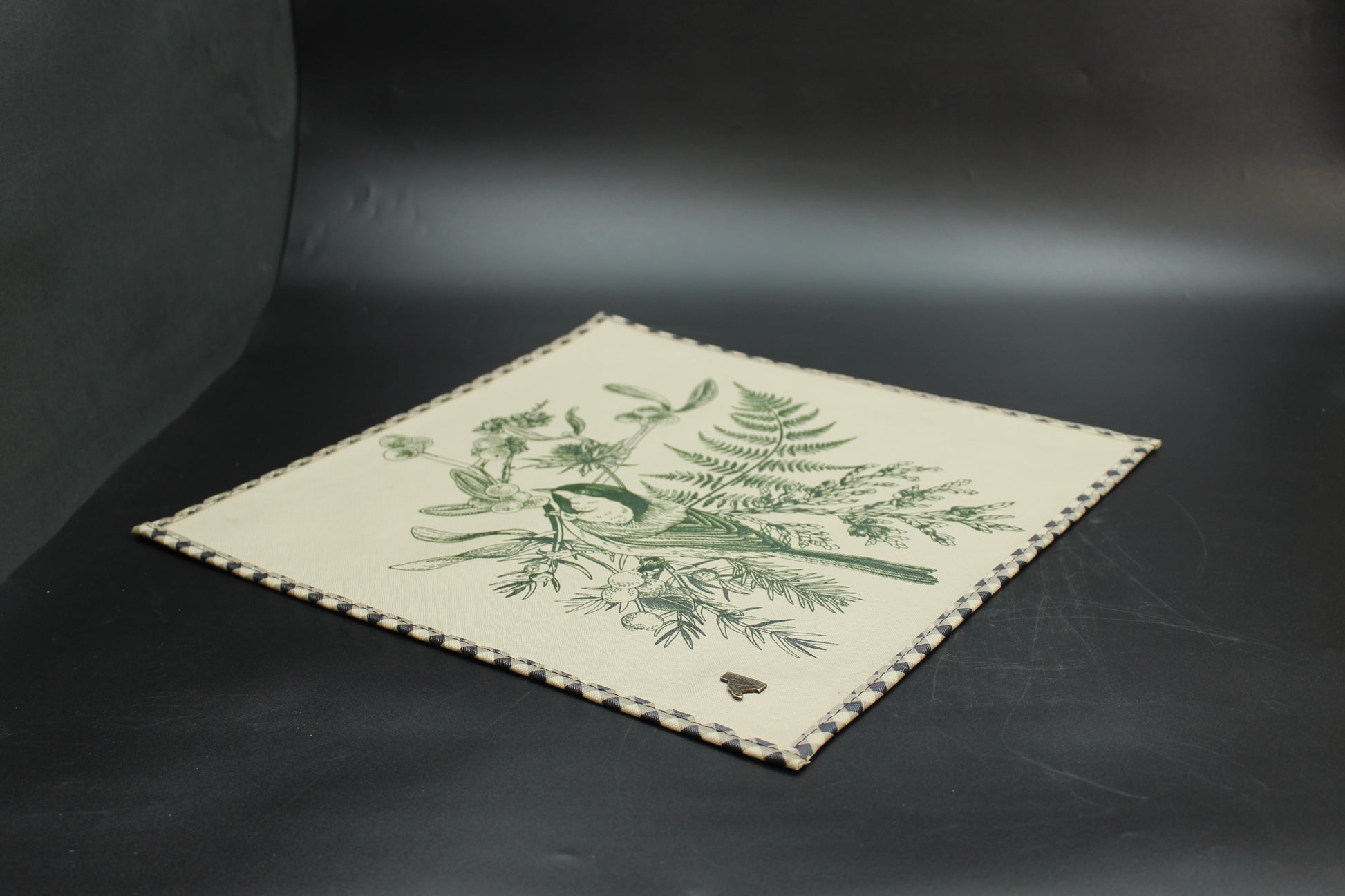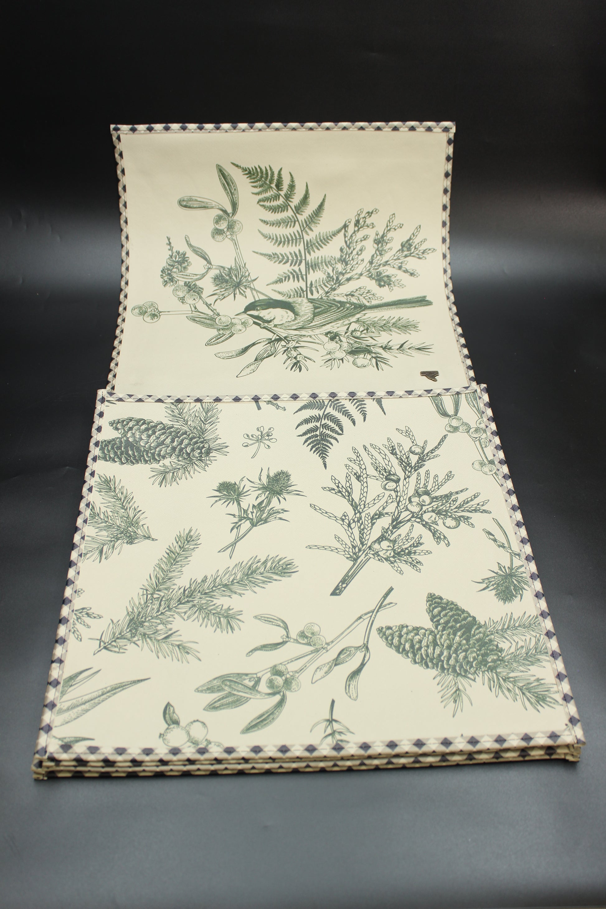 Beautiful green foliage synthetic leather placemat set. (6 square mats) Dual-sided with 2 different designs.