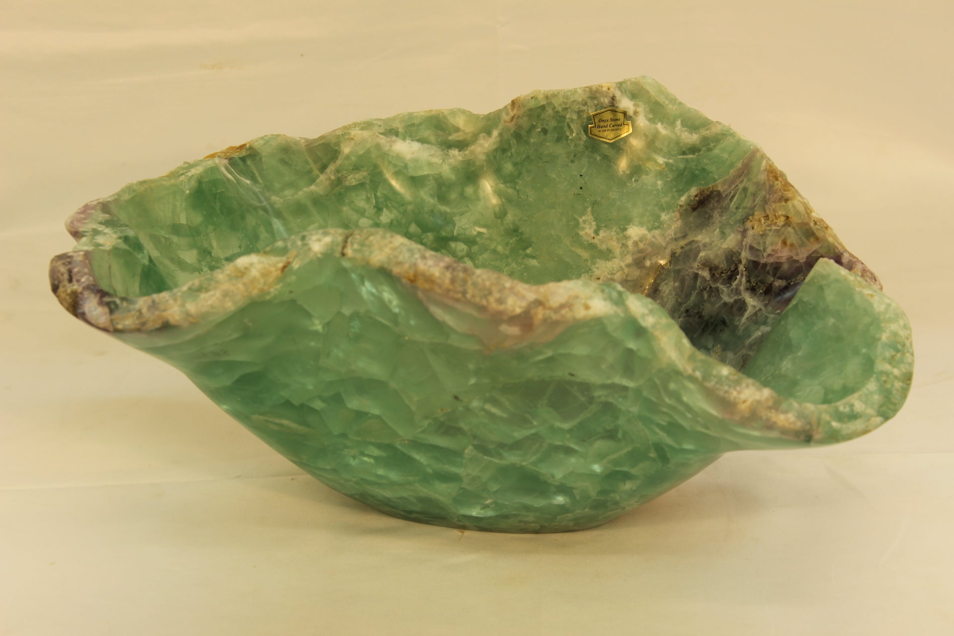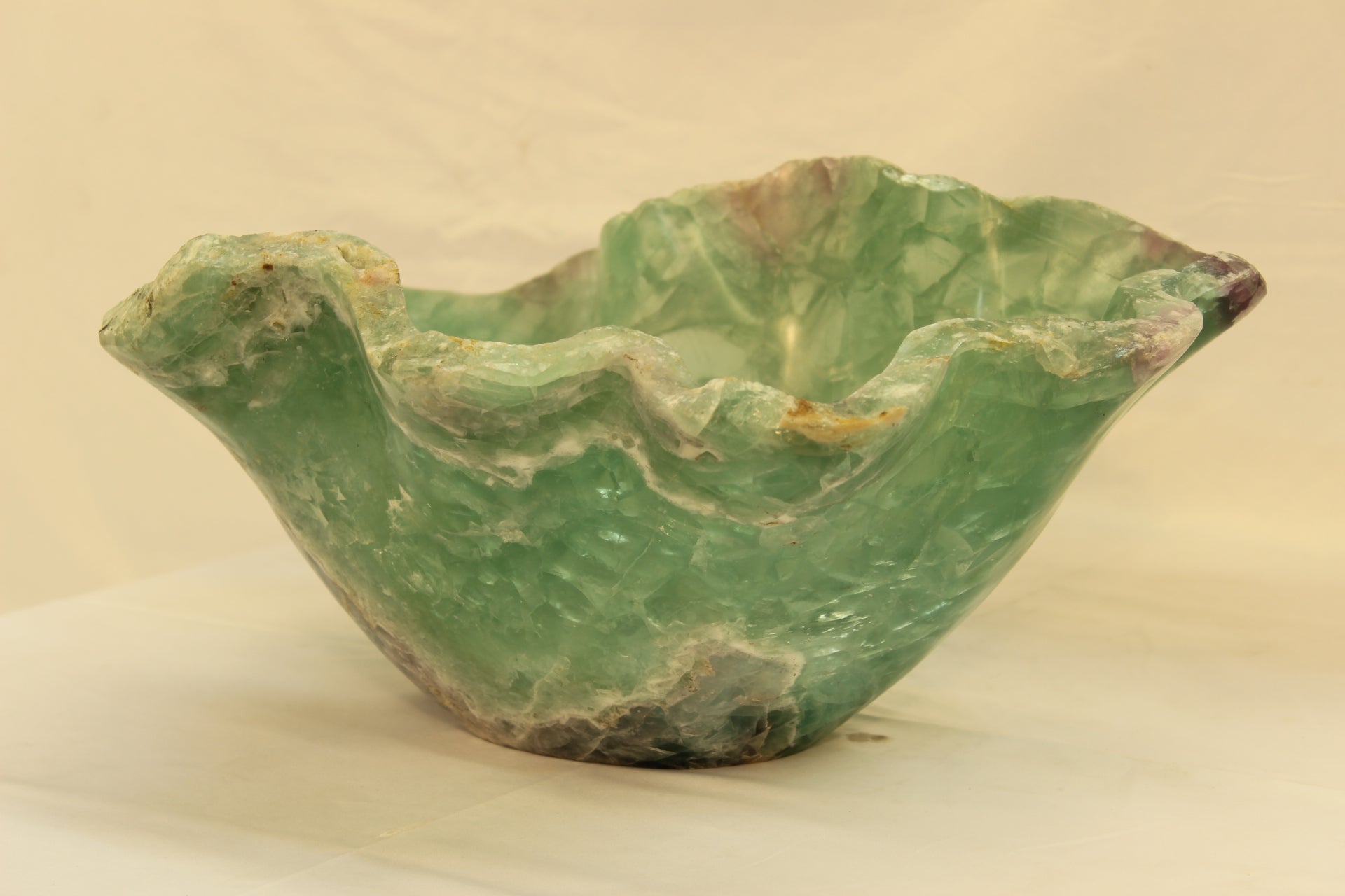 Green And Purple handcrafted fluorite centerpiece. This precious stone has been carefully crafted for millions of years by the artisans that are our Mexican volcanoes. Each stone is unique in its nature- no extracted piece is the same as another, so our Mexican artists make sure to pick the most beautiful examples to craft exquisite pieces of art.