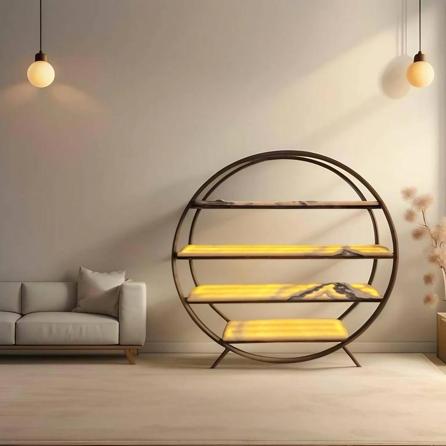Handmade 74" Iron & Onyx Stone Bookshelf