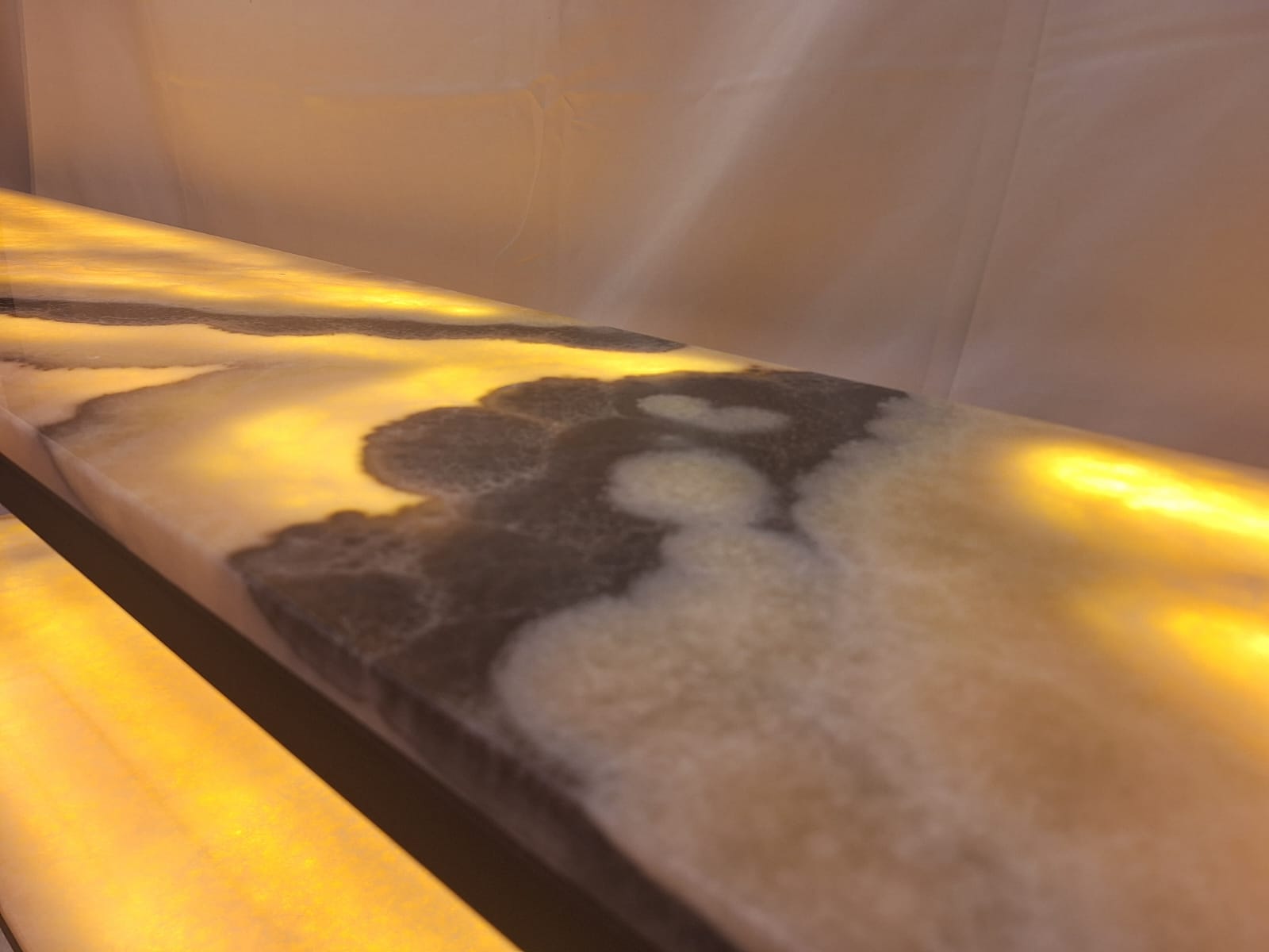 - Four 12" deep 'Honey & Black' Onyx Stone shelves
