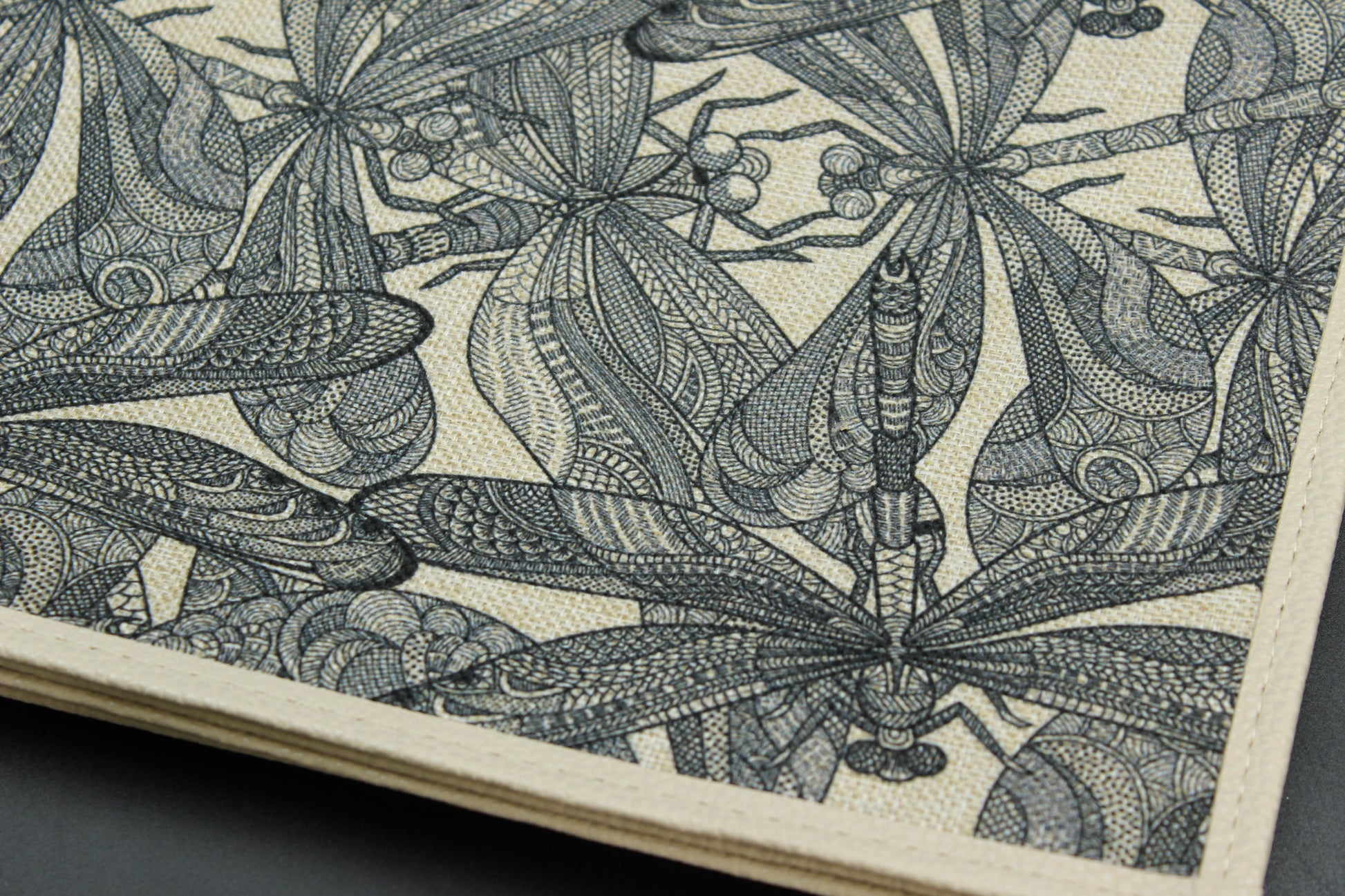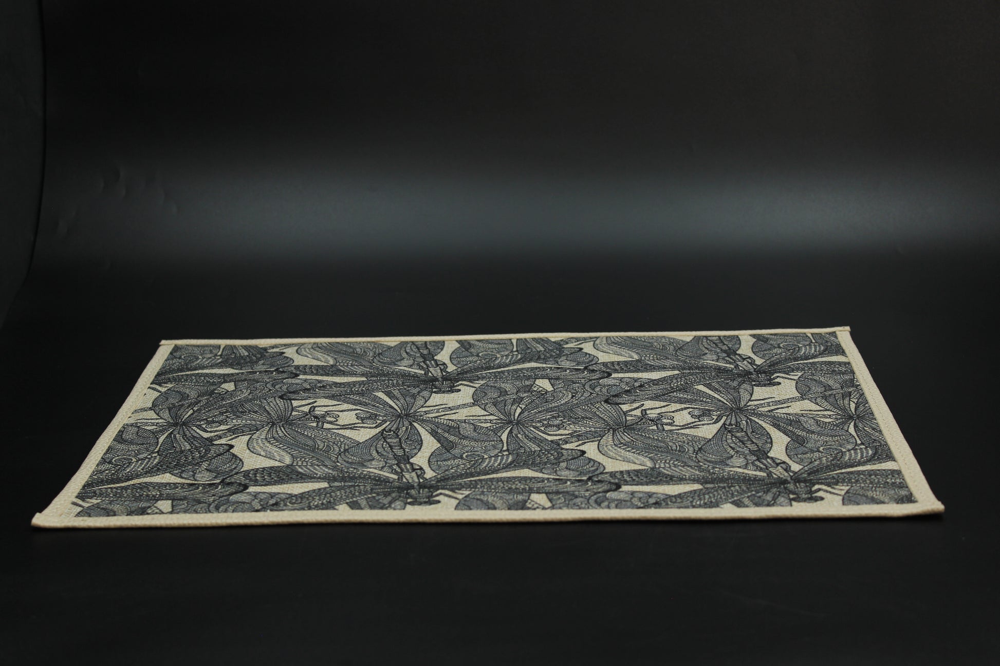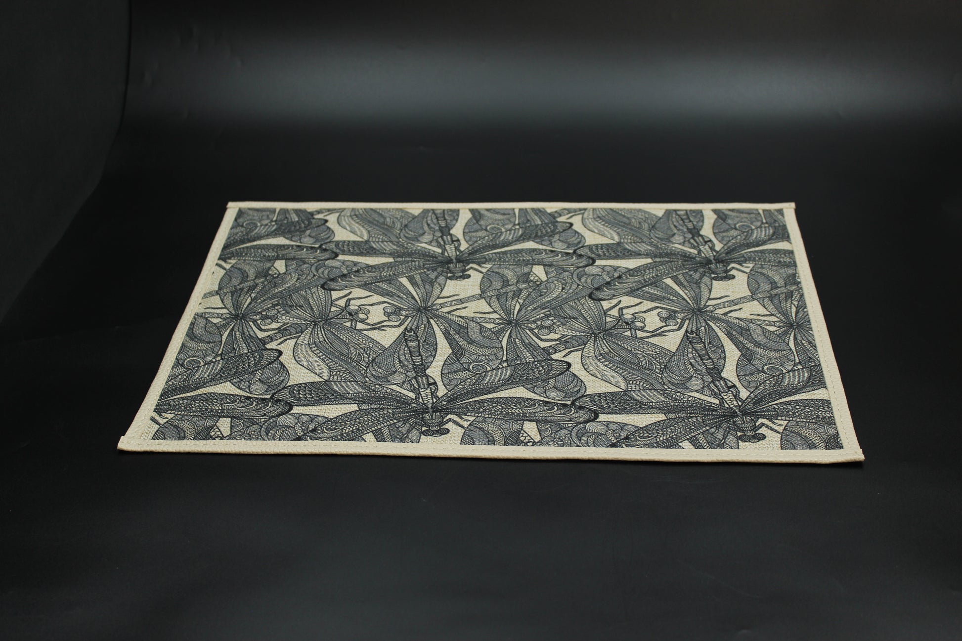 Beautiful hemp dragonfly placemat set. (6 rectangular mats) Dual-sided with 2 different designs.