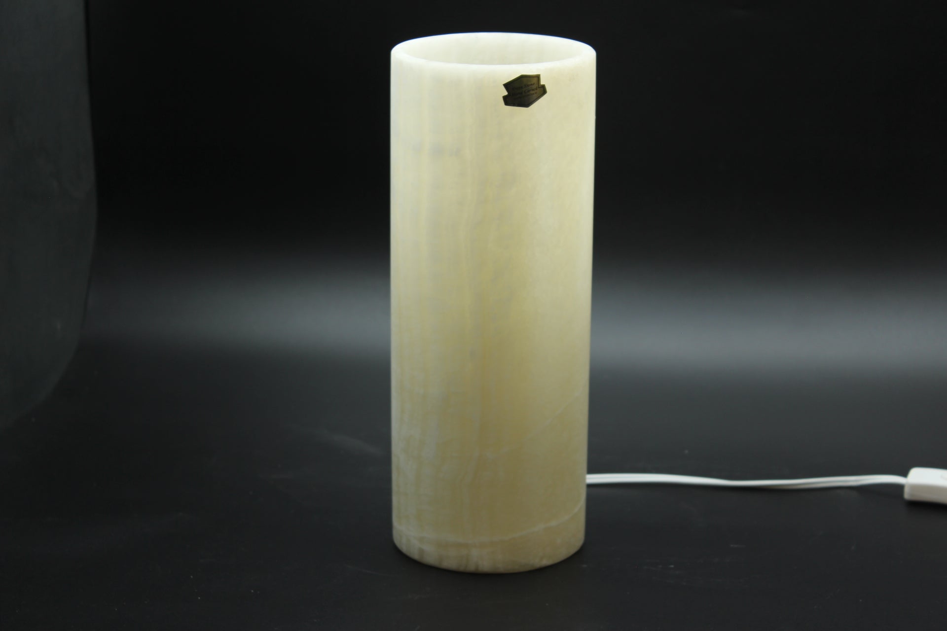 Beautiful white and beige handcrafted onyx decorative lamp. This precious stone has been carefully crafted for millions of years by the artisans that are our Mexican volcanoes. Each piece is unique in its nature- no extracted stone is the same as another. Our Mexican artists make sure to pick the most unique samples from our volcanic deposits, and craft exquisite pieces of art by using the stone's magnificent translucent properties.