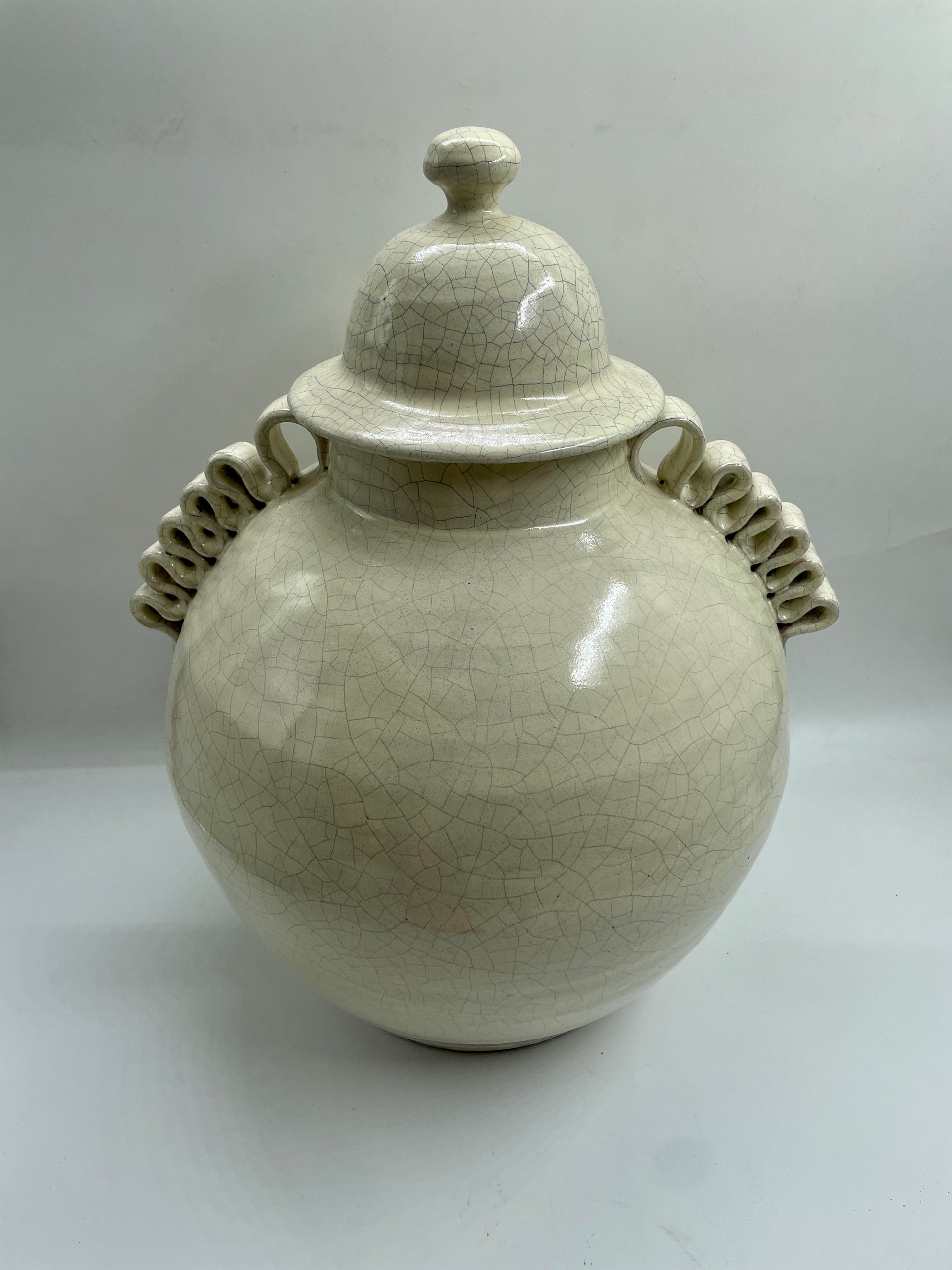 Beautiful beige handcrafted patterned ceramic urn. Known for its good artisan quality, Mexican ceramic products are part of the best of the world. Thanks to centuries of a huge cultural swap coming all the way from the Arabian peninsula, and then passing through the Iberic peninsula, Mexican ceramic artists have perfected and achieved a unique method that yields some fascinating and beautiful designs that will elevate the perception of your home.