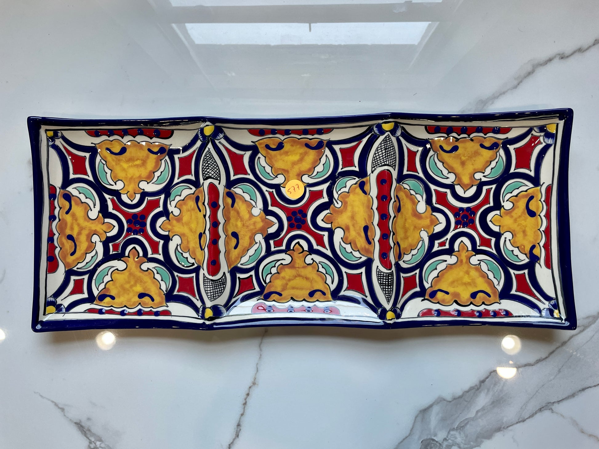 Multicolor 3pc Patterned Bowl and Tray Talavera Set