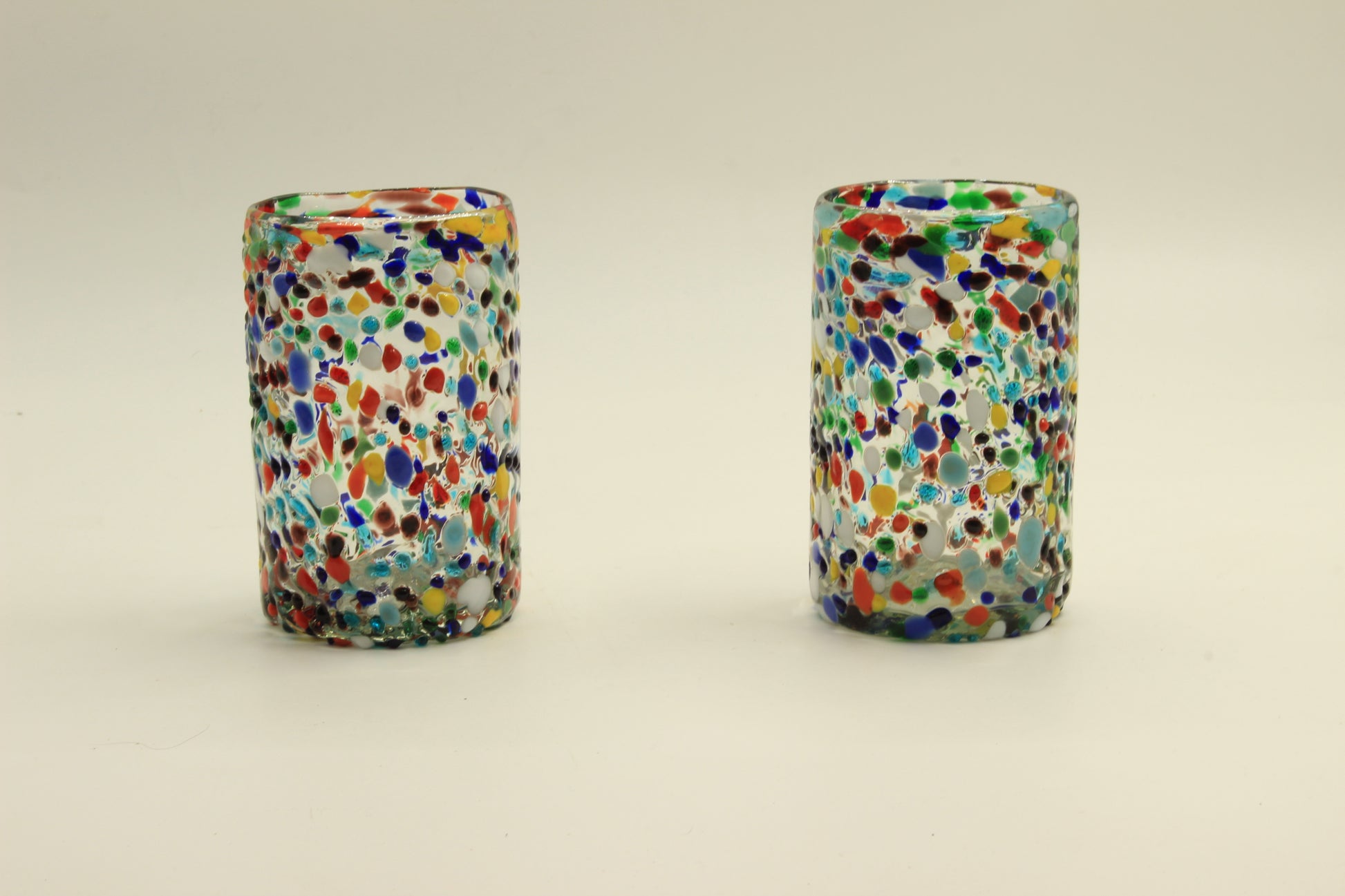Beautiful multicolor blown glass set. Only compared with the Italian blown glass techniques from Murano, the blown glass quality from Tlaquepaque in Mexico is from the best of its kind in the world. Every artist has dedicated their lifetime to master this technique, and as a result of generations of perfectioning said technique, the artists produce some of the best blown glass pieces in the world.
