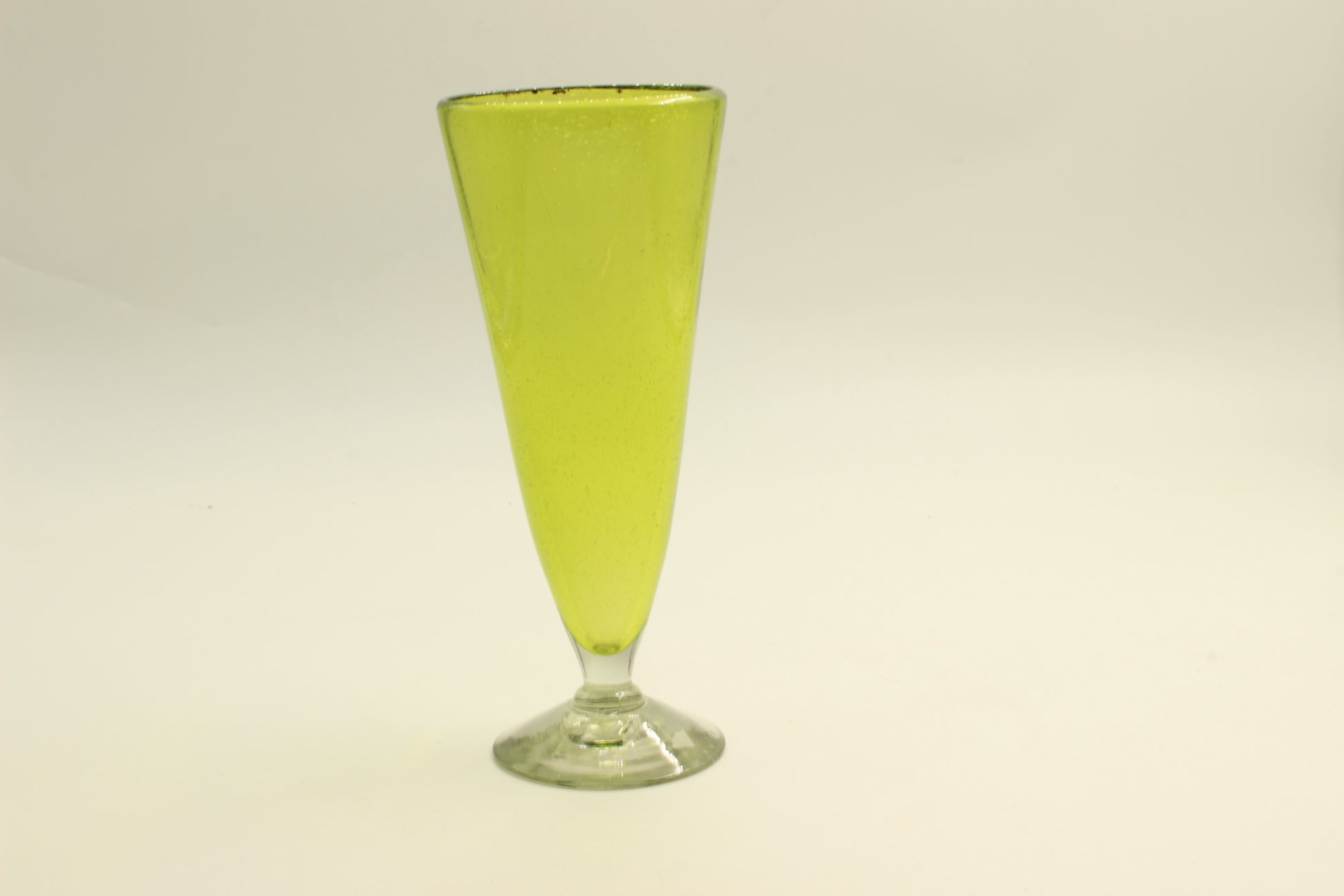 Beautiful tall olive green blown glass set. Only compared with the Italian blown glass techniques from Murano, the blown glass quality from Tlaquepaque in Mexico is from the best of its kind in the world. Every artist has dedicated their lifetime to master this technique, and as a result of generations of perfectioning said technique, the artists produce some of the best blown glass pieces in the world.