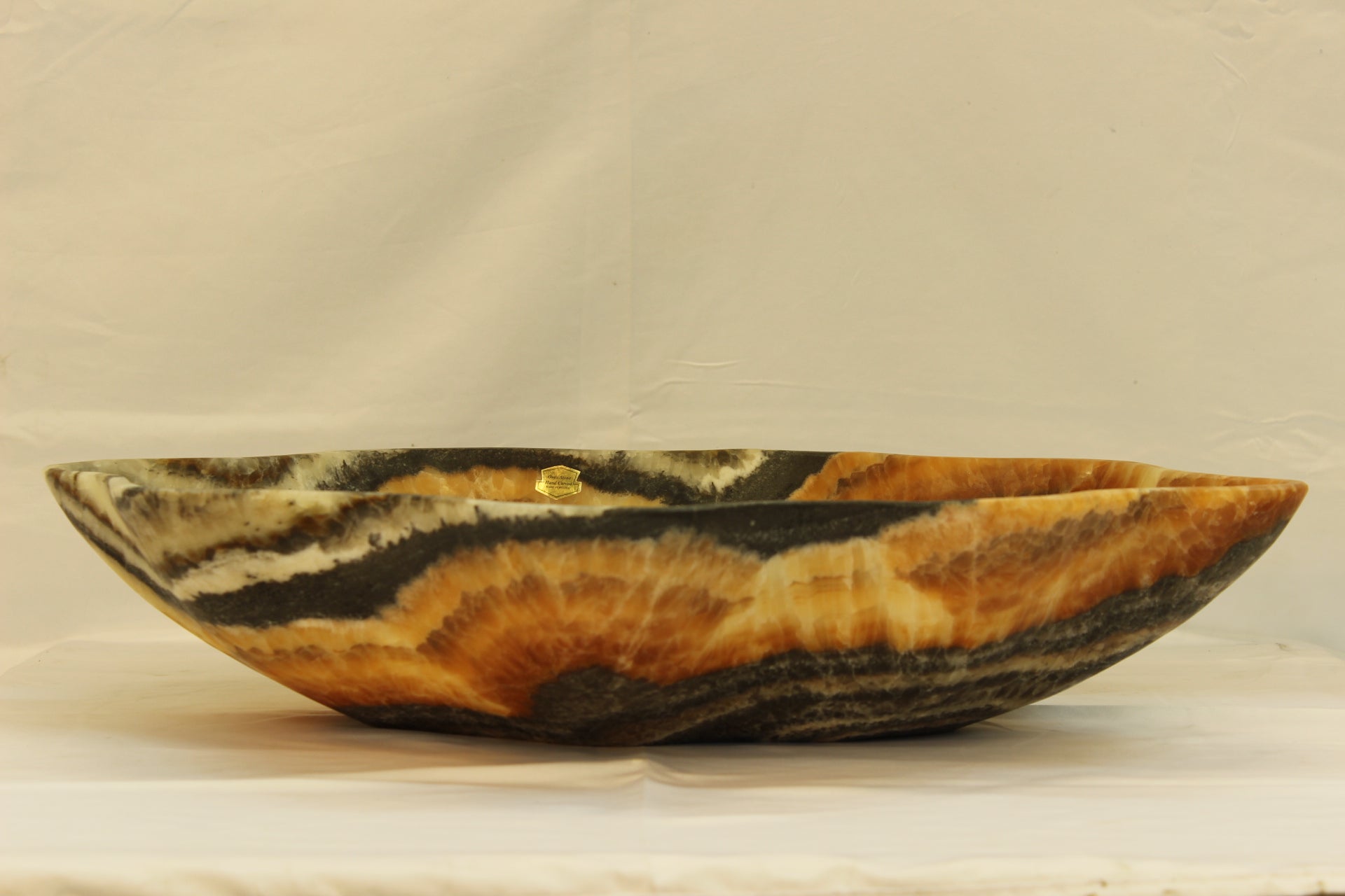 Red and black handcrafted onyx centerpiece. This precious stone has been carefully crafted for millions of years by the artisans that are our Mexican volcanoes. Each stone is unique in its nature- no extracted piece is the same as another, so our Mexican artists make sure to pick the most beautiful examples to craft exquisite pieces of art.
