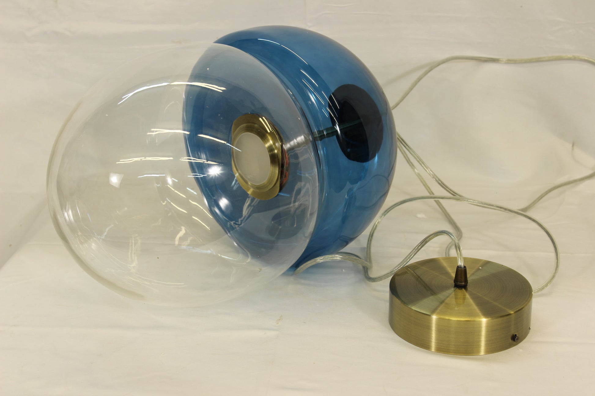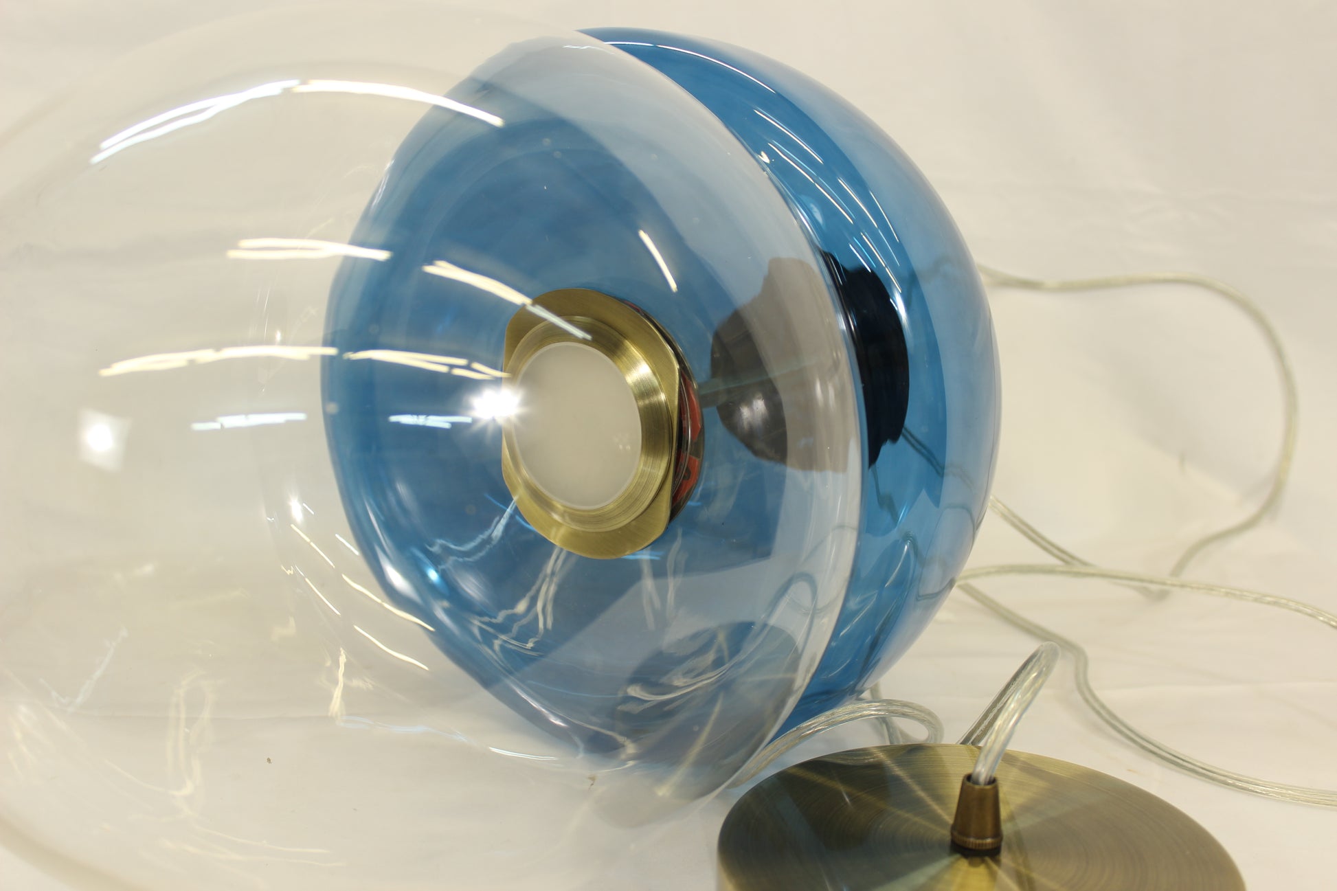 This product was originally designed for hotel lobbys and is now available to the general public. Dual Glass Globe lamp with Royal Blue top globe and clear glass bottom globe.