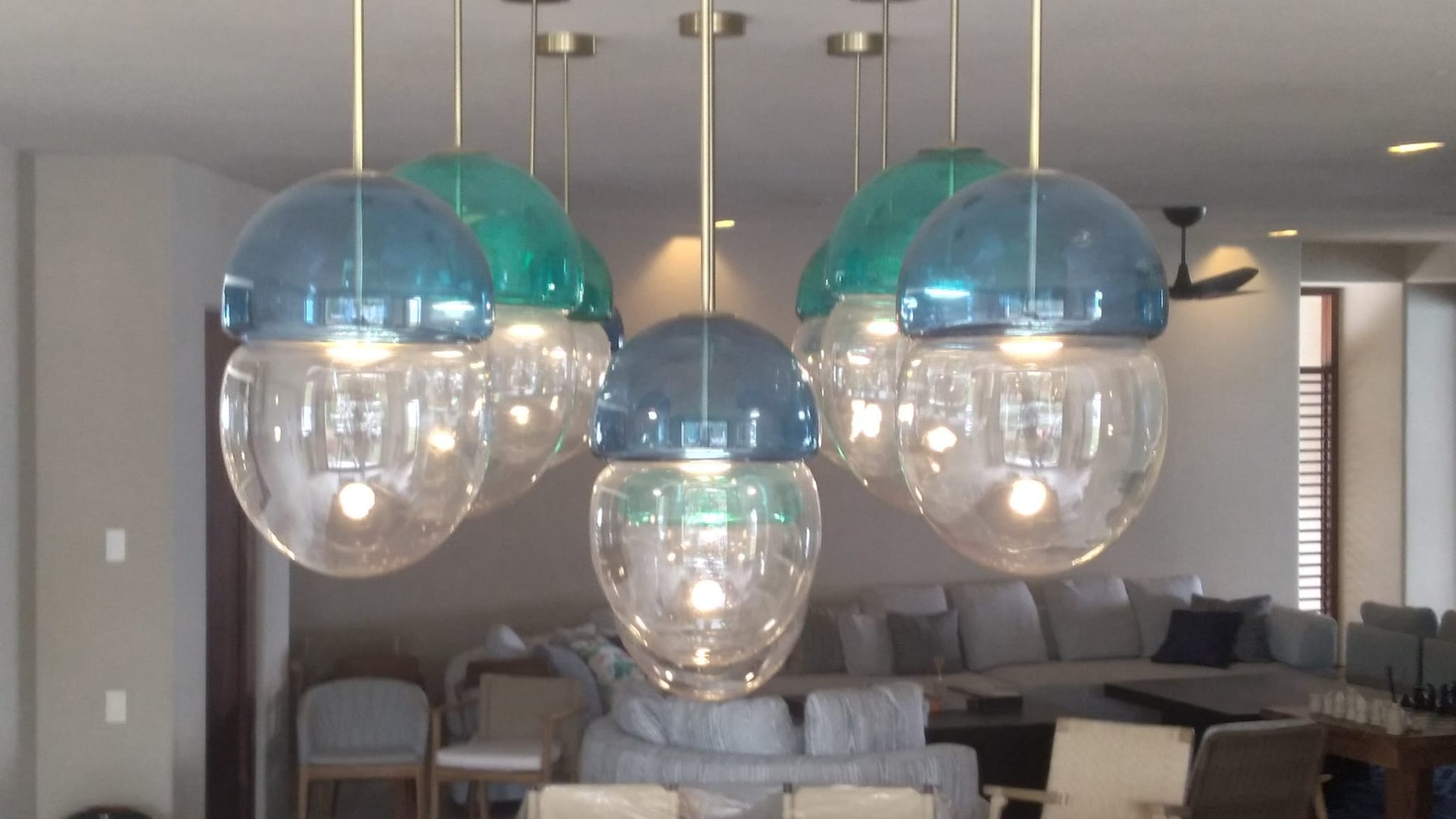 The original Dual Glass Globe LED Hanging Pendant/Chandelier Light from the original inventor in Mexico, Energy Imagineering. All similar products are cheap plastic facsimiles and rip-offs.
