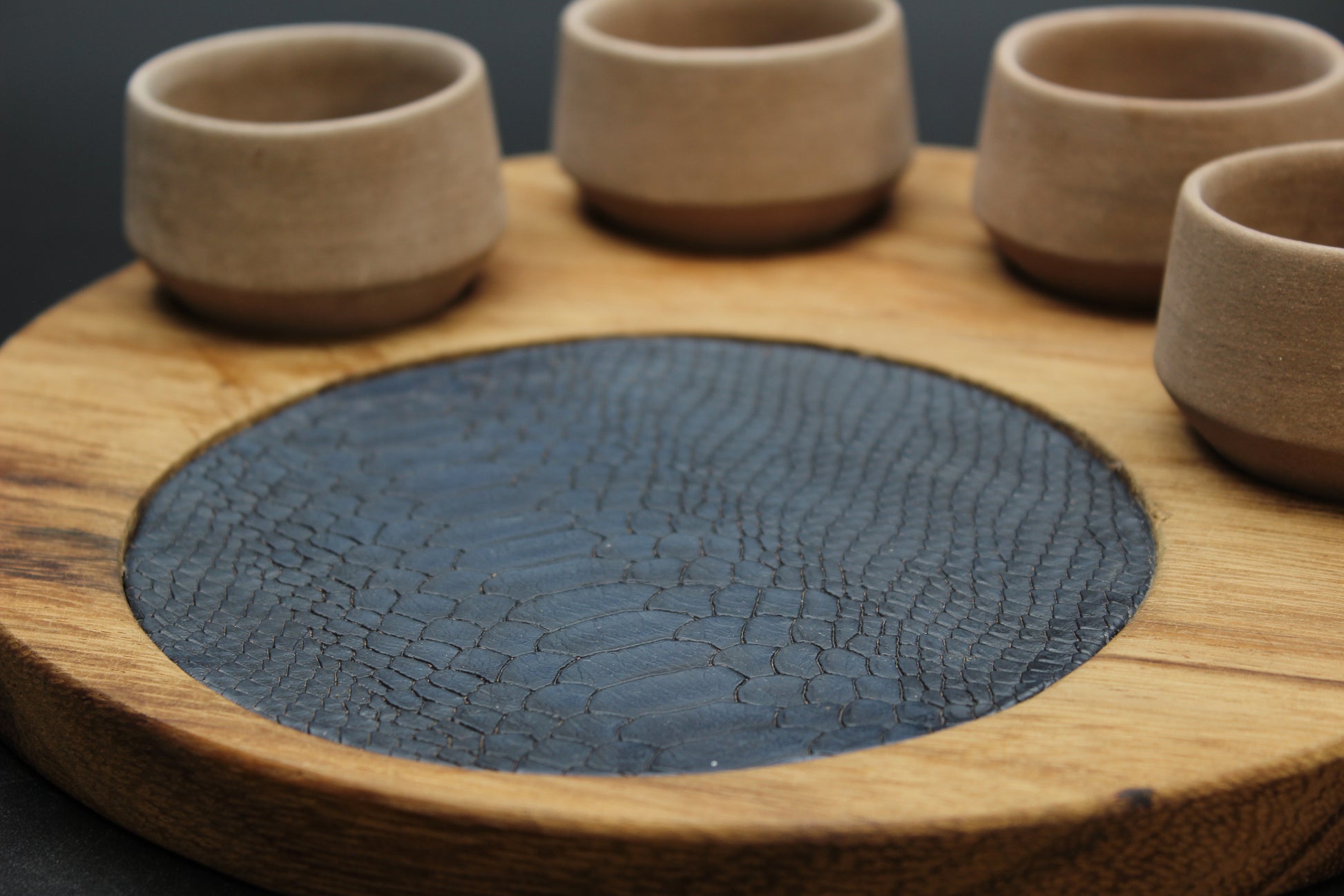 Beautiful blue snakeskin, handcrafted, Sand ceramic Mezcalero & Tequilero drinking set. Ideal for drinking Tequila or Mezcal with friends.