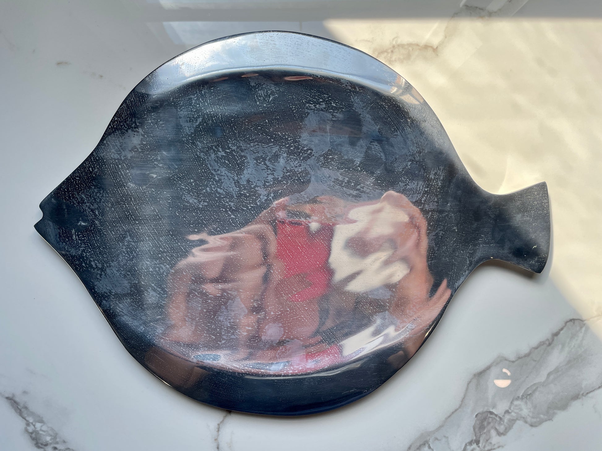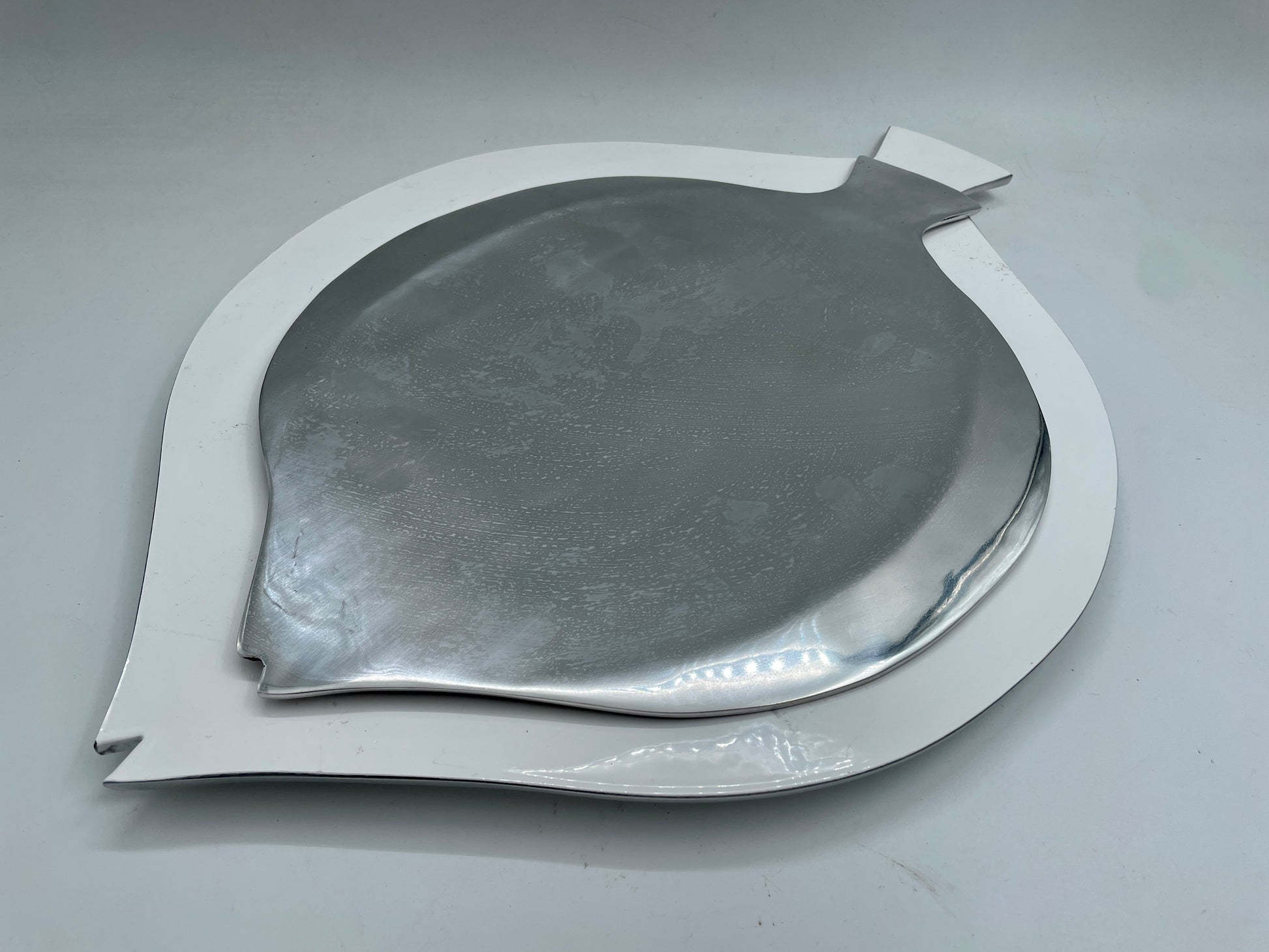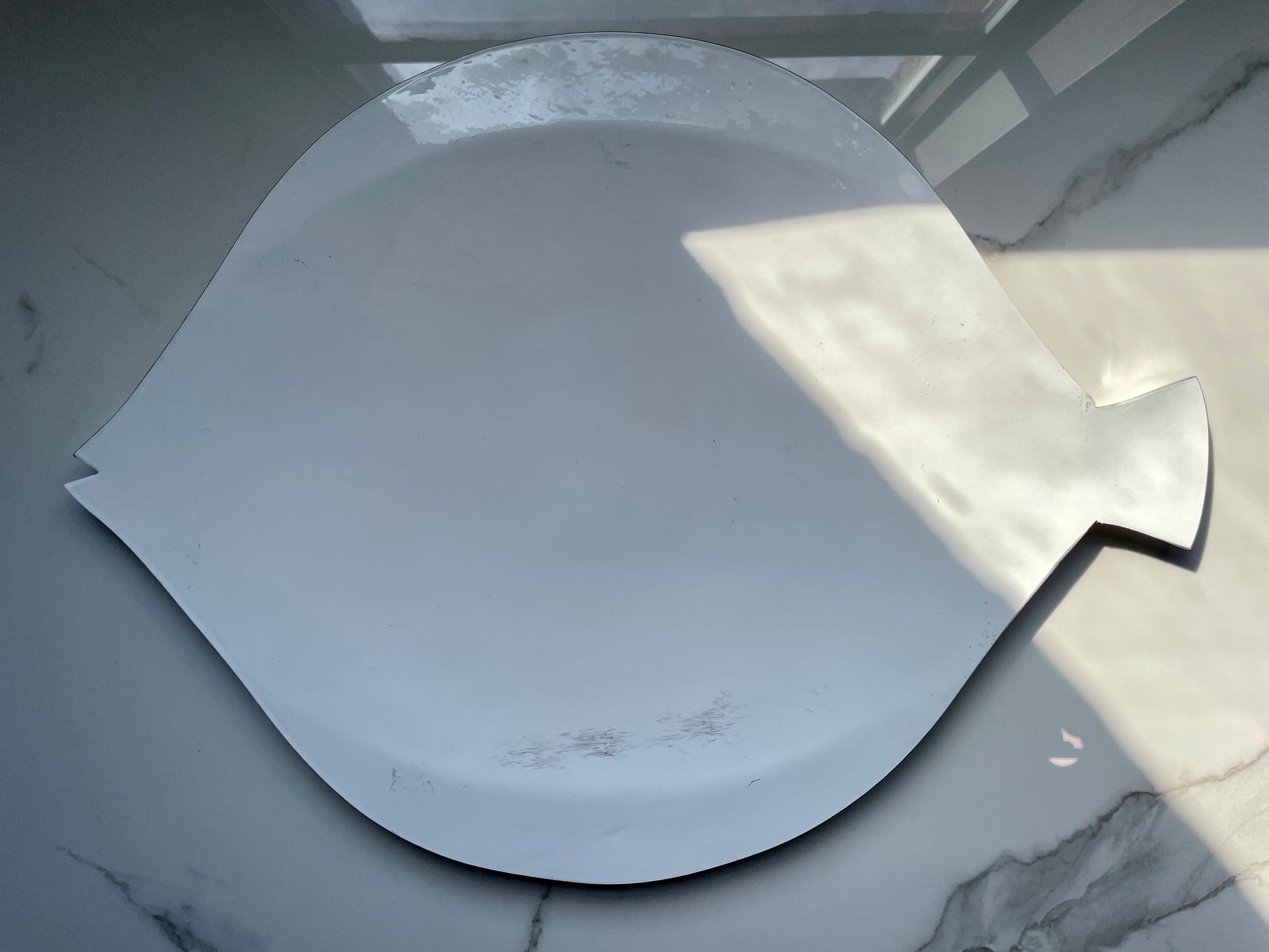 Beautiful silver and white fish styled pewter tray set. Our beautiful and stylish Mexican Pewter collection will bring a modern touch to your home like no other. The products we offer in this collection are top of the line when it comes to Mexican artisan works. They are valued worldwide for their impressive designs and finishes. Don't miss out!