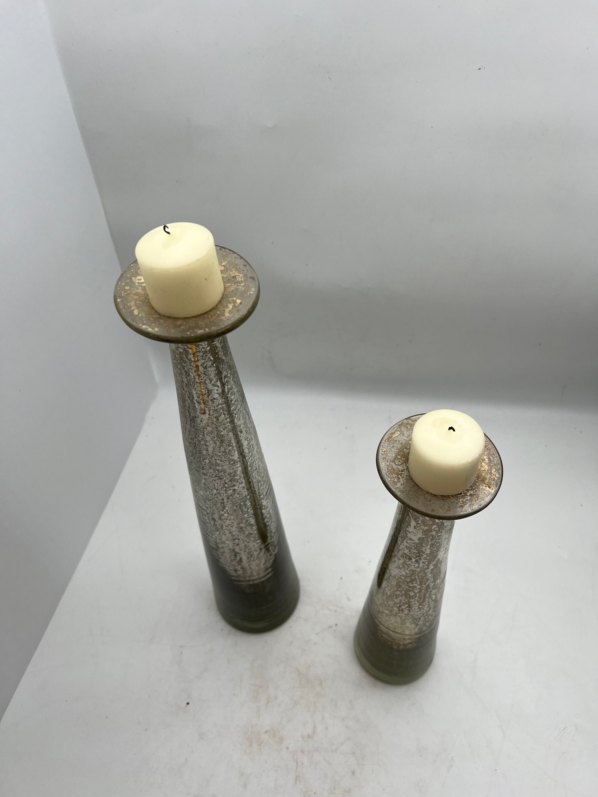 Beautiful silver and gold flower vase set made out of blown glass. Only compared with the Italian blown glass techniques from Murano, the blown glass quality from Tlaquepaque in Mexico is from the best of its kind in the world. Every artist has dedicated their lifetime to master this technique, and as a result of generations of perfectioning said technique, the artists produce some of the best blown glass pieces in the world.