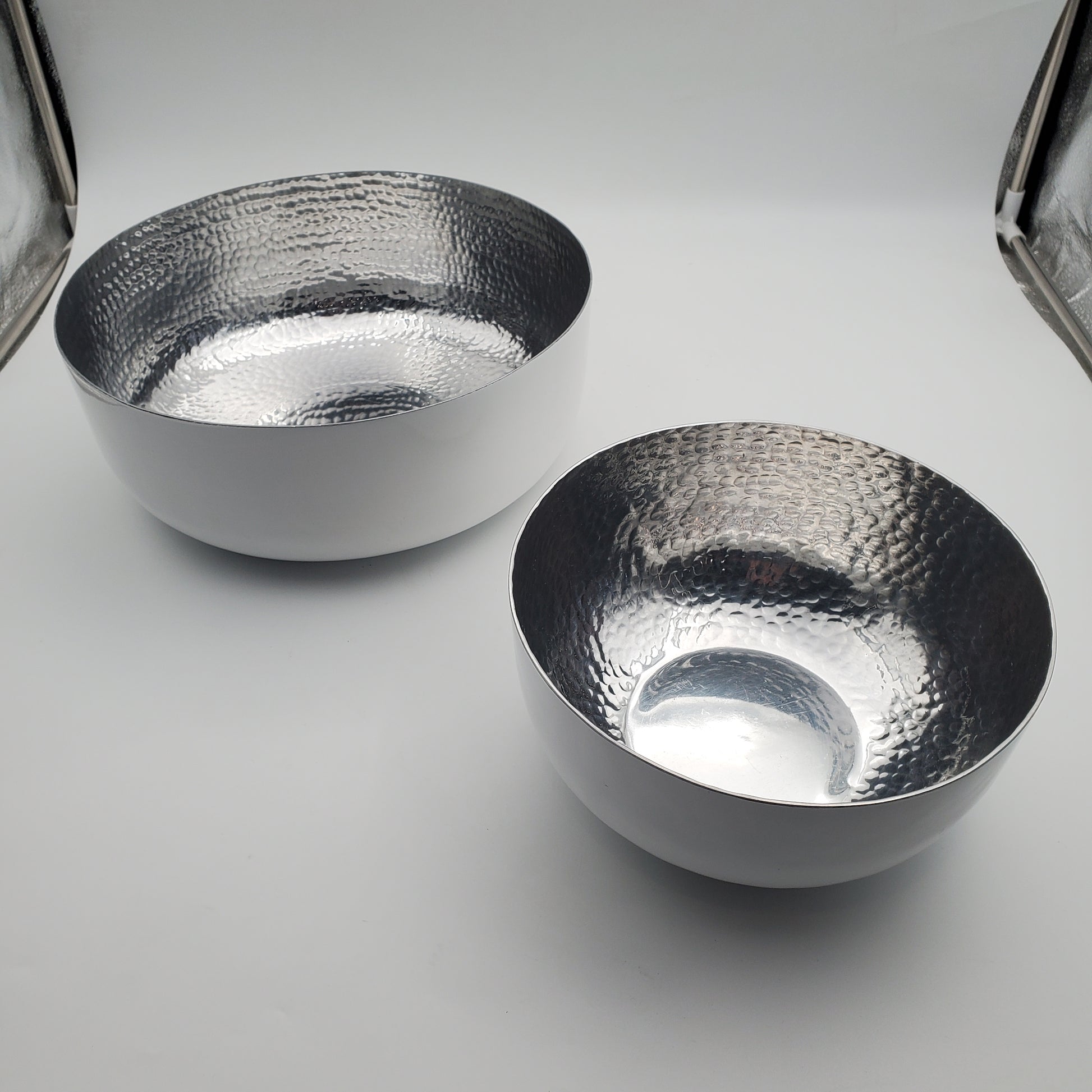 Beautiful silver and white round styled pewter bowl set. Our beautiful and stylish Mexican Pewter collection will bring a modern touch to your home like no other. The products we offer in this collection are top of the line when it comes to Mexican artisan works. They are valued worldwide for their impressive designs and finishes. Don't miss out!